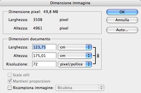 2- una immagine a 72 dpi i cui cm diventeranno 87,49 x 123,75 cm.