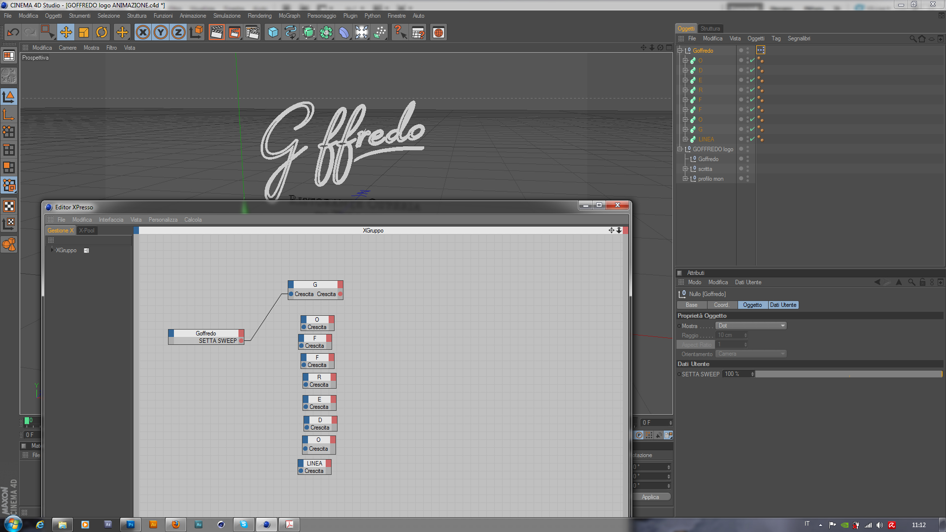 mi sto cimentando con xpresso, e sto cercando, per una volta, di automatizzare un'animazione di un lettering di un logo.
