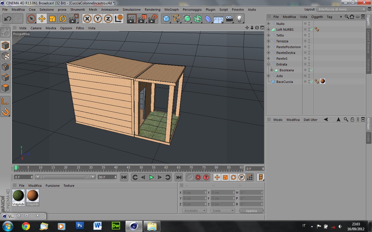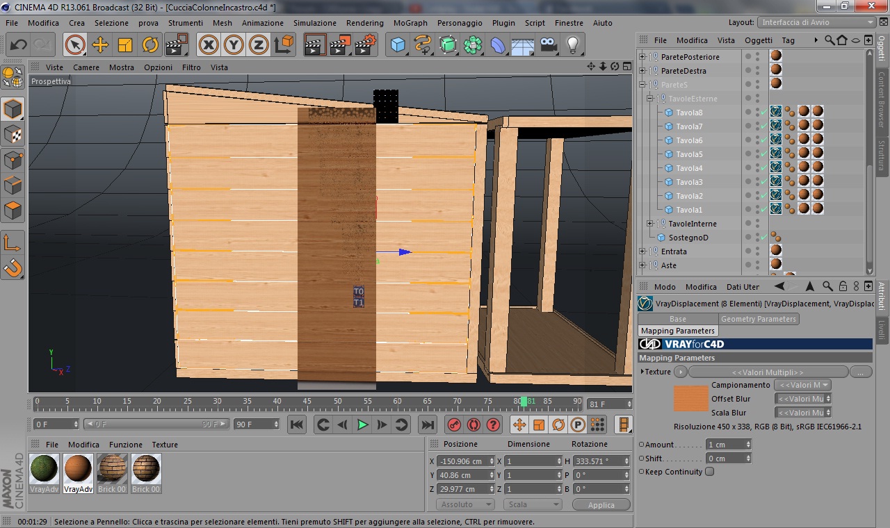 Ciao a tutti, sto realizzando una cuccia per cani, però mi sono accorto che c'è problema! Come vedete nell'immagine del progetto ai lati della cuccia ci sono delle tavole di legno, però dopo che applico il materiale vray e renderizzo, finito il render la parete della cuccia sembra unica e non suddivisa in tavole (come vedete nell'immagine del render). Inoltre il materiale che ho applicato agli altri pezzi della cuccia e anche alle tavole risulta (nelle tavole) in scala diversa. Come faccio a mostrare che la parete è costruita da tavole e sopratutto che la texture del legno sia uguale alle altre parti della cuccia? :?