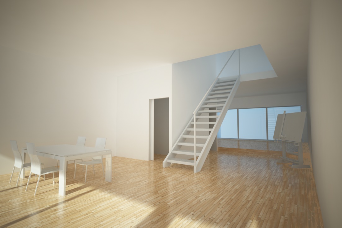 Grazie,si cinema e vray.Non mettere l'AO che ti crea quelle linee nere nelle intersezioni dei muri.C'è qualcosa che non mi quadra nella zona delle finestre specialmente dove c'è il tecnigrafo a terra.Sembra che il pavimento prosegua al di la delle vetrate