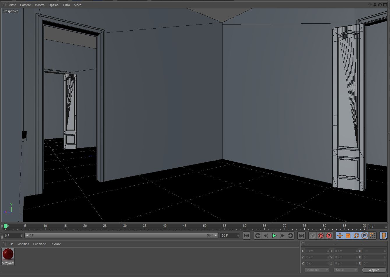 Ho posizionato la camera all'interno della scena, ho modificato leggermente il campo visivo dell'obbiettivo per poter inquadrare meglio l'ambiente, ora però vorrei aumentare la larghezza dell'immagine finale.