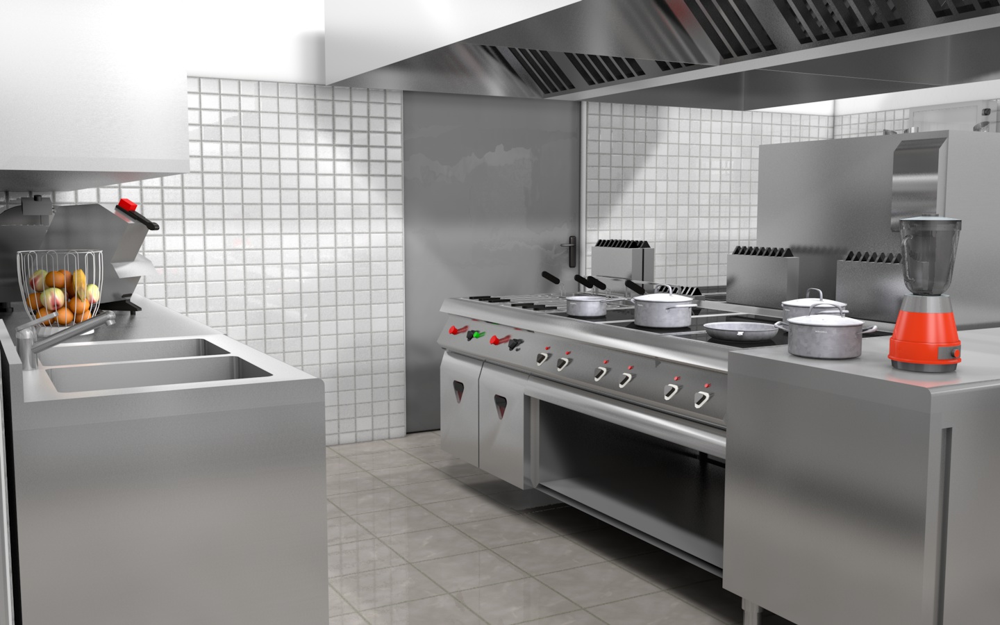 per provare a lavorare sugli acciai e le cucine professionali mi sono divertito a fare questa prova, della quale sarei lieto di ricevere tutte le critiche del caso. Modellazione fornitami per cui non ho voce in capitolo.