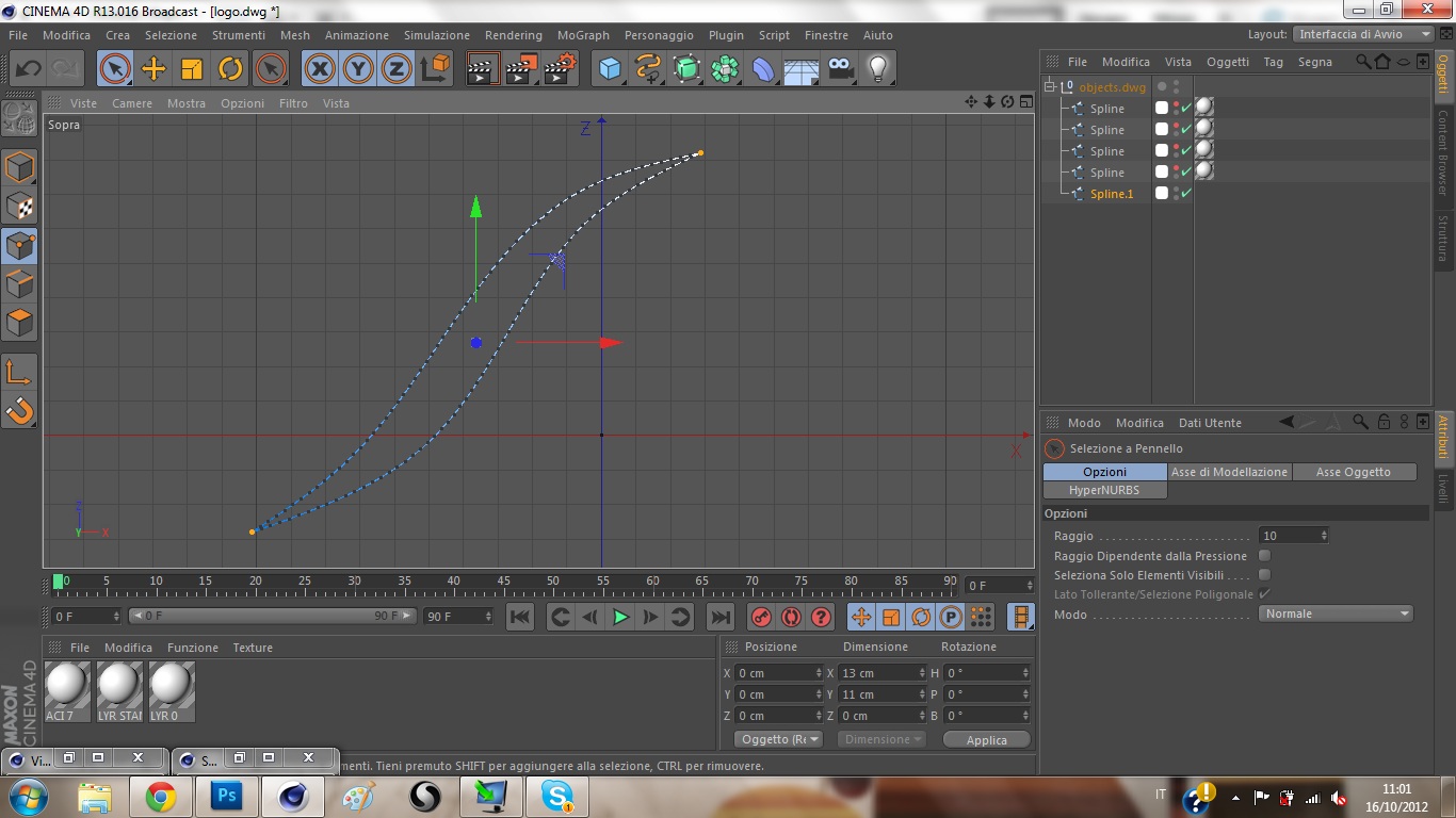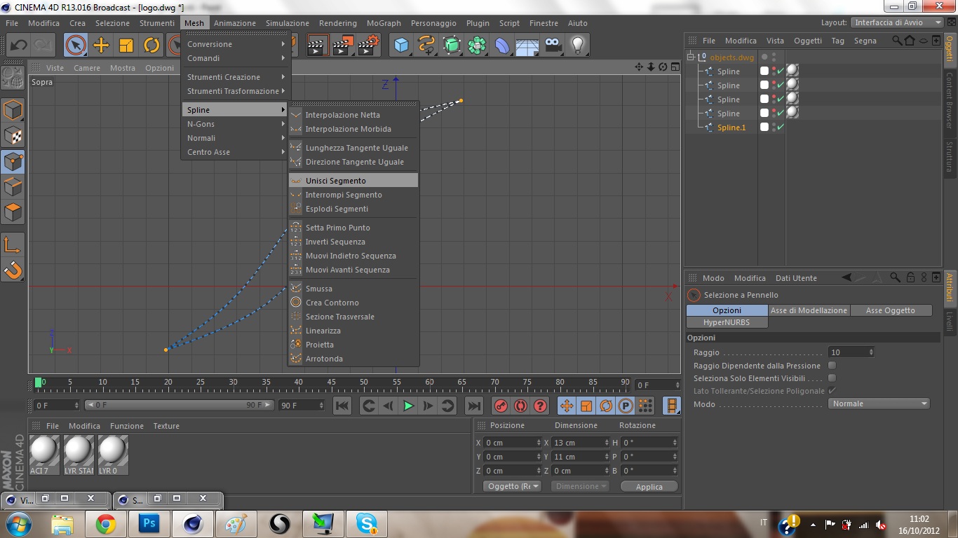 credo di aver fatto come hai detto...ma mi crea una linea in più...intendevi forse altro?ti allego i passaggioltre a connettere le 2 spline, x chiuderla correttamente, devi anche selezionare i punti che combaciano (selezionando anche gli elementi non visibili) e fare "unisci segmenti" così diventa una spline a tutti gli effetti intera.
