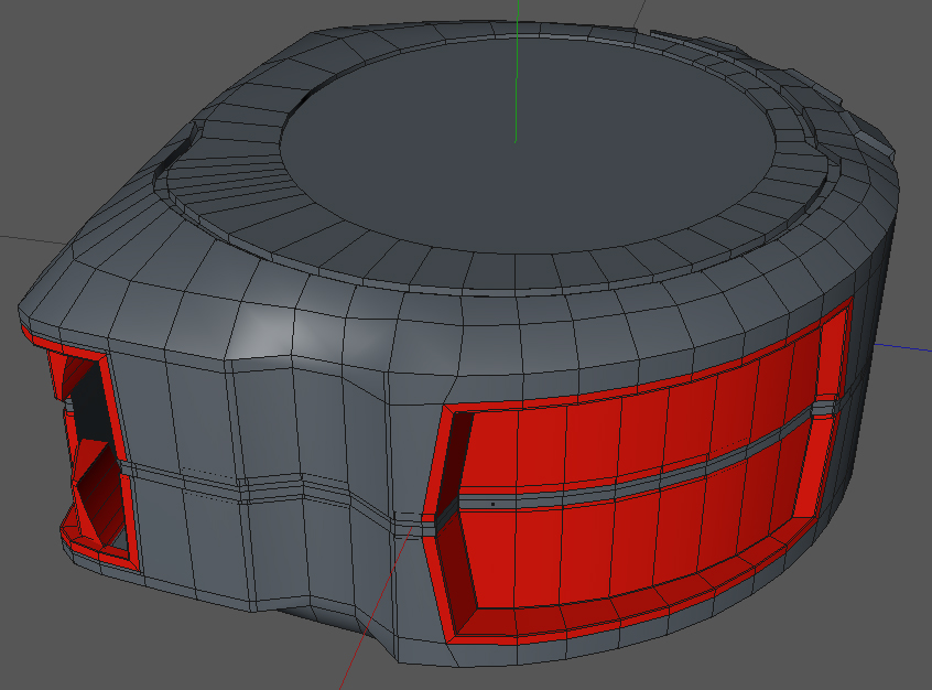 Ho creato la cavità attraverso delle estrusioni interne e spostando i poligoni..e successivamente il tasto centrale, creato partendo da un cubo modificato..le 3 strisce in rilievo sono 3 cubi modificati e posizionato sopra il tasto..ecco questa è una delle parti che dovrei rifare, cercando di modellarlo con un singolo oggetto