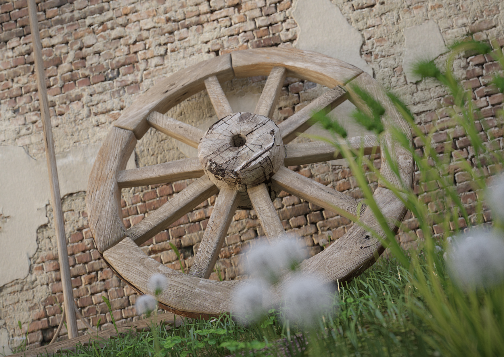 Due quisquiglie: i mattoni sembrano un po' piccini e in teoria ci vorrebbero almeno 2 raggi per ogni gavello (quei pezzi che compongono la circonferenza della ruota) sennò il contadino rischia di scucuzzare dal carretto per cedimento della ruota! :lol: