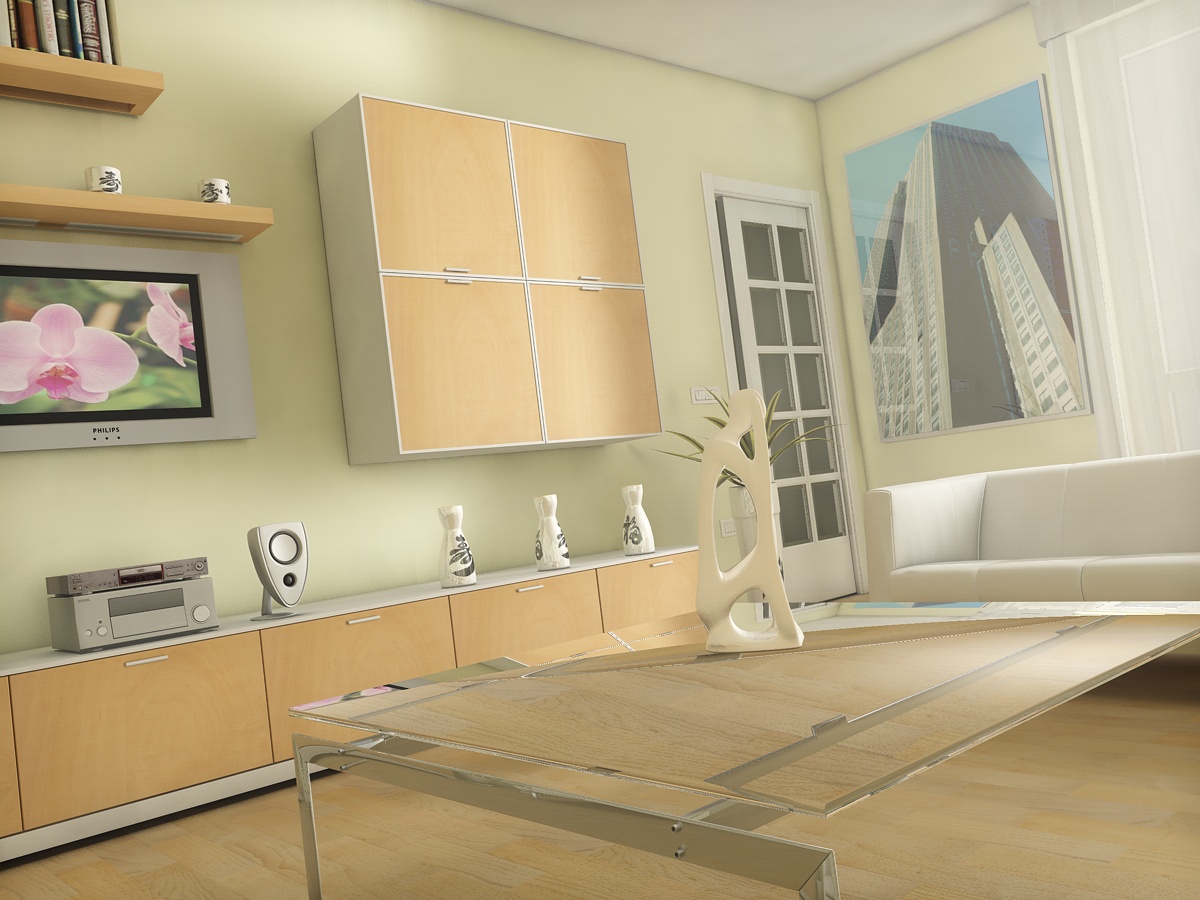 Io non toccherei più niente salvo, forse, la rifrazione del tavolo in cristallo che credo sia un po troppo esagerata.