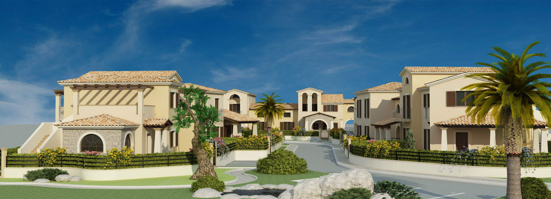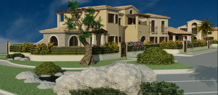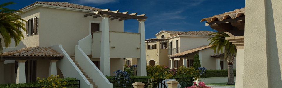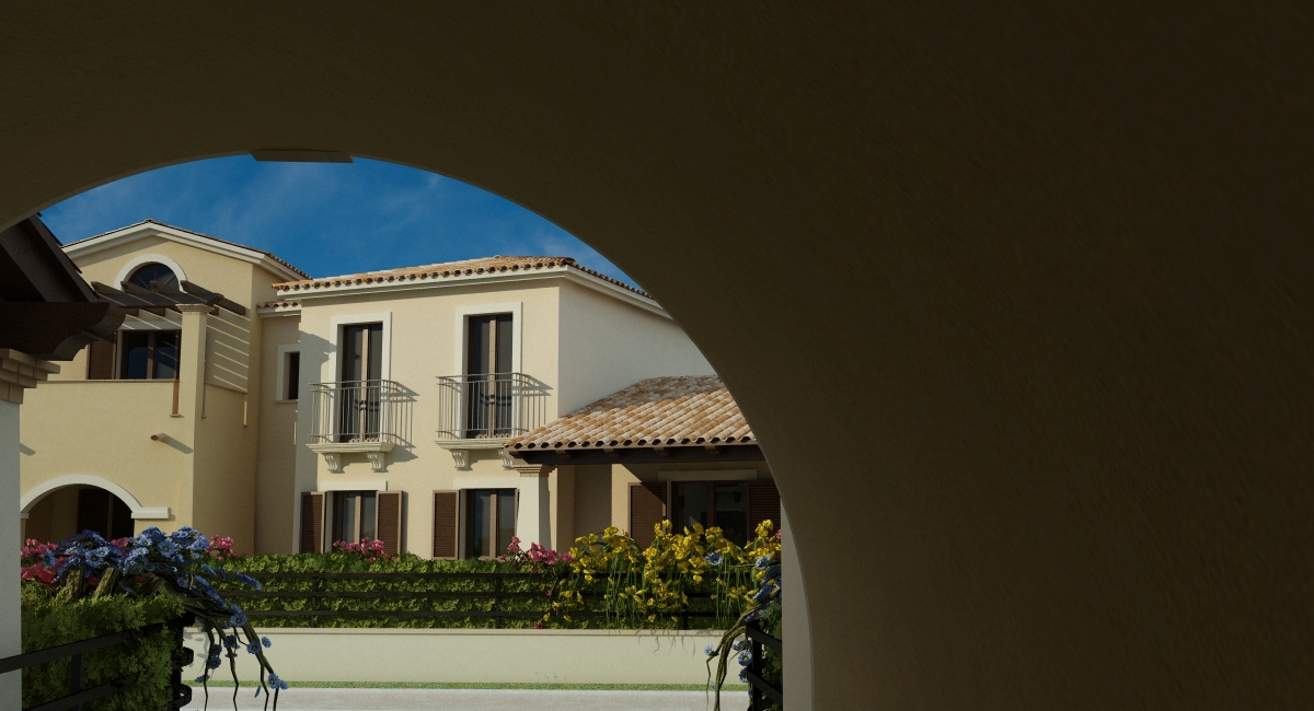 Ad occhio, per migliorare leggermente il tuo render, io ti consiglierei innanzitutto di schiarire il cielo che al momento è troppo scuro, ciò darà l'impressione di essere tutto più luminoso. Eviterei inquadrature in cui si veda la fine del cielo tipo l'angolo in basso a sinistra di quest'ultima immagine. Curerei meglio la texture del rivestimento in pietra sulla facciata, magari con un displace, mentre l'intonaco delle facciate lo renderei meno omogeneo con un disturbo nello specular.