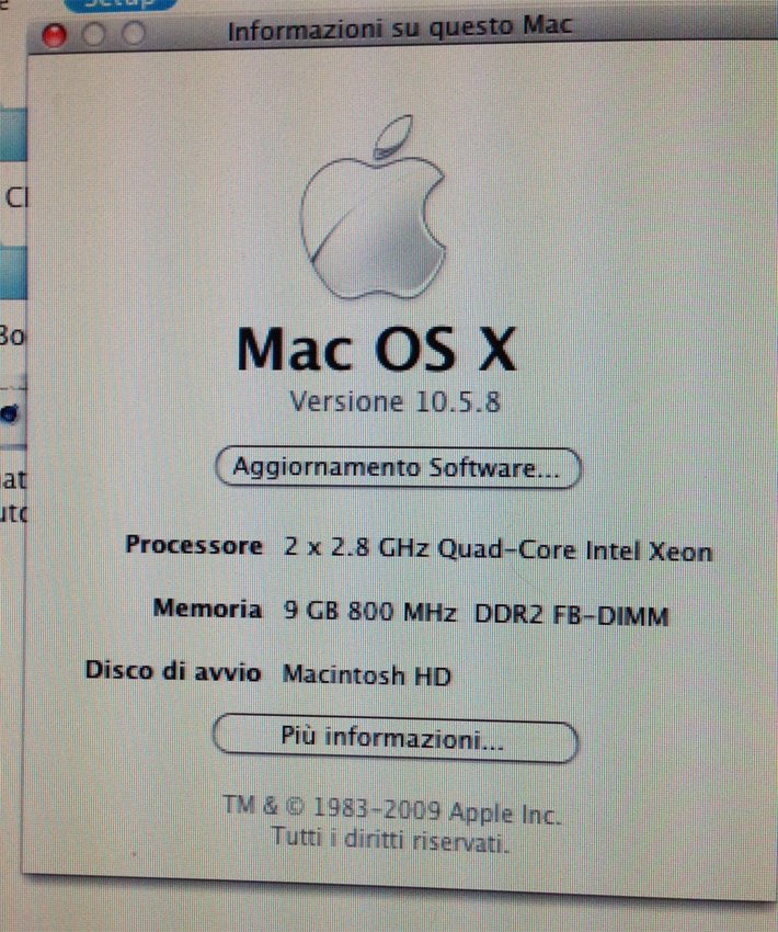 Non puoi neanche aggiornare perchè non hai l' AppStore. Dovresti prima passare alla 10.6.X (Snow Leo)