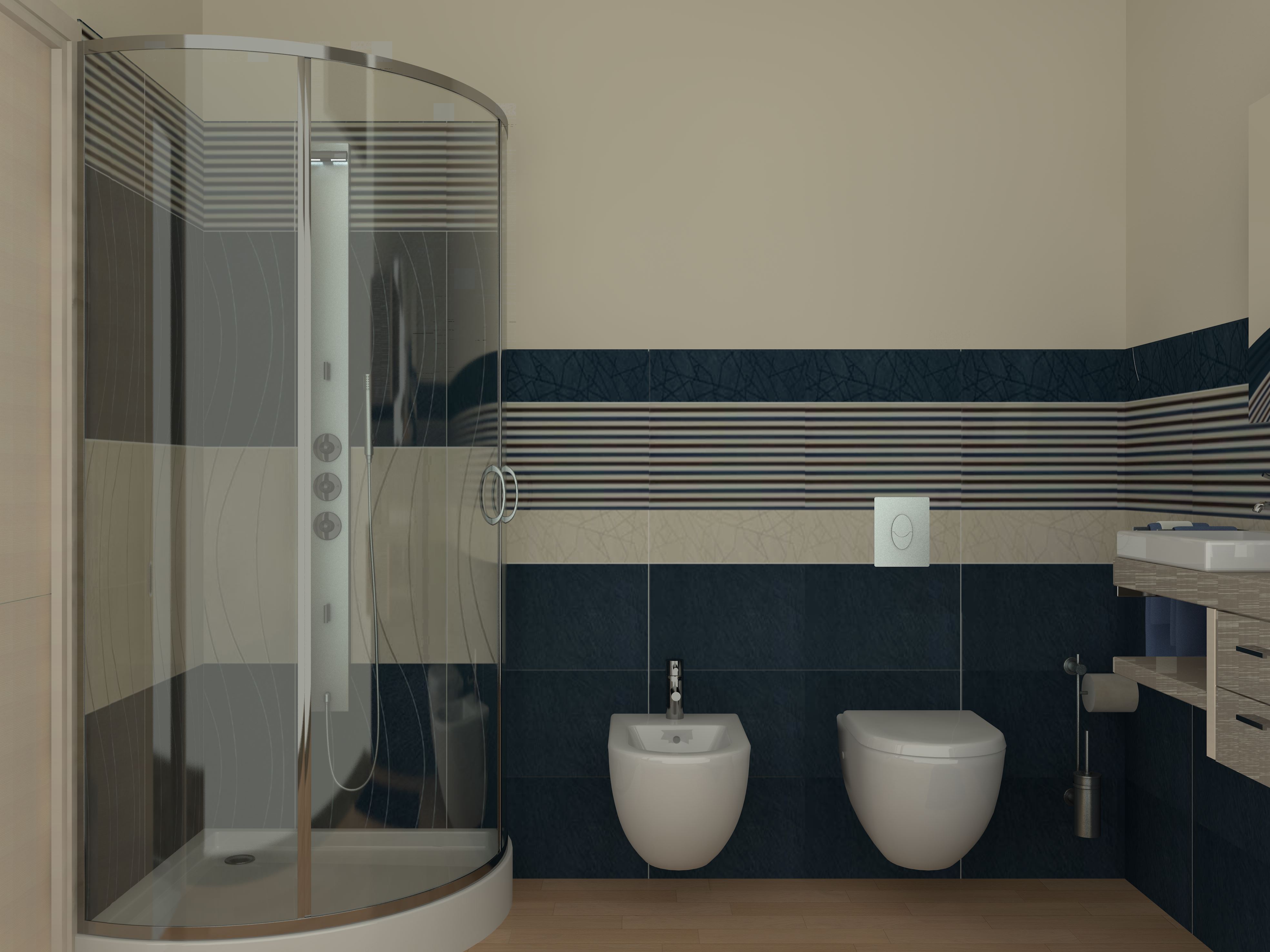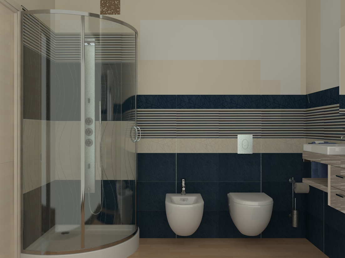 Ciao a tutti :) , dopo un bel pò di tempo di assenza causa laurea, torno per sottoporvi una questione: nel rendering in allegato, compaiono delle strane macchie grigie che non riesco a spiegarmi...sono in corrispondenza dello spigolo dello specchio e a lato del vetro della doccia sopra il bidet...