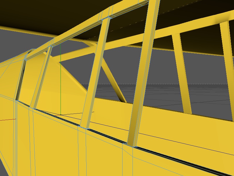 come puoi vedere, facendo un confronto da quello fatto prima ad adesso, i montanti prima erano estruzi direttamente dalla carrozzeria, questo è dovuto dal fatto che quando parti a modellare da un poligono vuoto e aggiungi punti, non ragioni come se avessi un cubo e quindi procedi aggiungendo punti e poi estrudi lo spessore. Questa cosa crea parecchi problemi quando aggiungi l'hipernurbs perchè è tutto stondato e quindi devi fare numerosi tagli per squadrare.