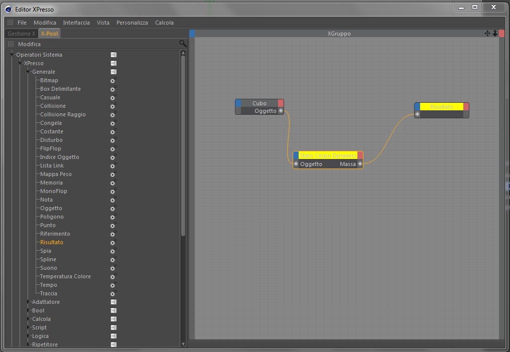 te lo dico ci ho provato a usare Xpresso ma non riesco ad ottenere il risultato !! probabilmente perchè non ho la minina idea di come funzioni ! questto e quello che fo provato a fare senza risultato ... ( con un semplice cubo per verificare l'unita di misura )
