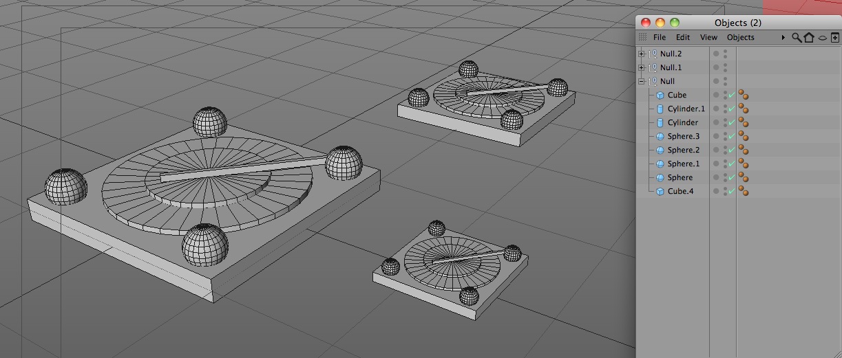..O quasi, qualcosa l'ho scordato. Venendo al punto mi trovo nella situazione in cui non riesco a rimpicciolire un modello modellato a parte ed importato nella scena corrente che a sua volta è in scala molto inferiore all'oggetto importato. Lo stumento "scala" in questo caso serve a poco in quanto il modello (un giradischi) inserito in un oggetto nullo è formato da molteplici mesh singole, per cui con lo strumento scala mi trovo nella spiacevole situazione in cui il modello finisce per stravolgersi completamente. Allego le immagini per essere più chiaro.