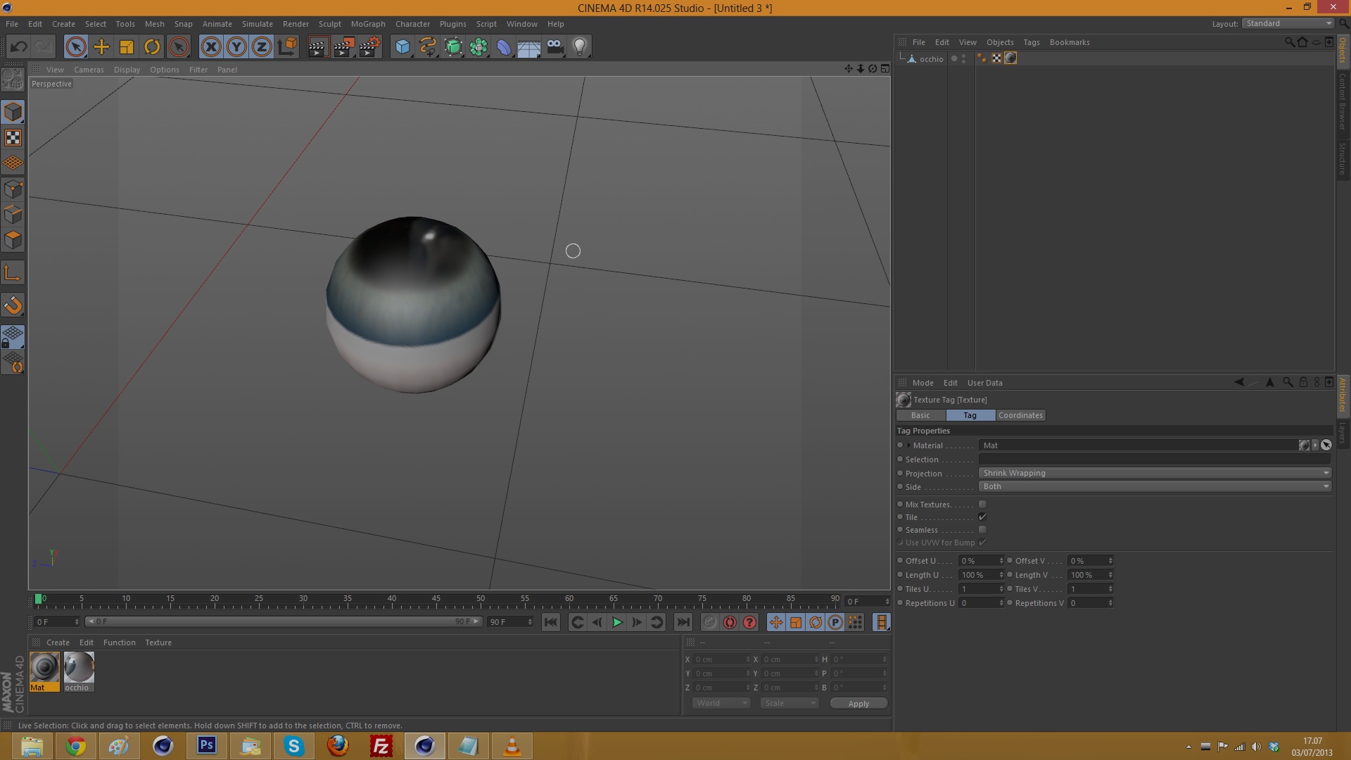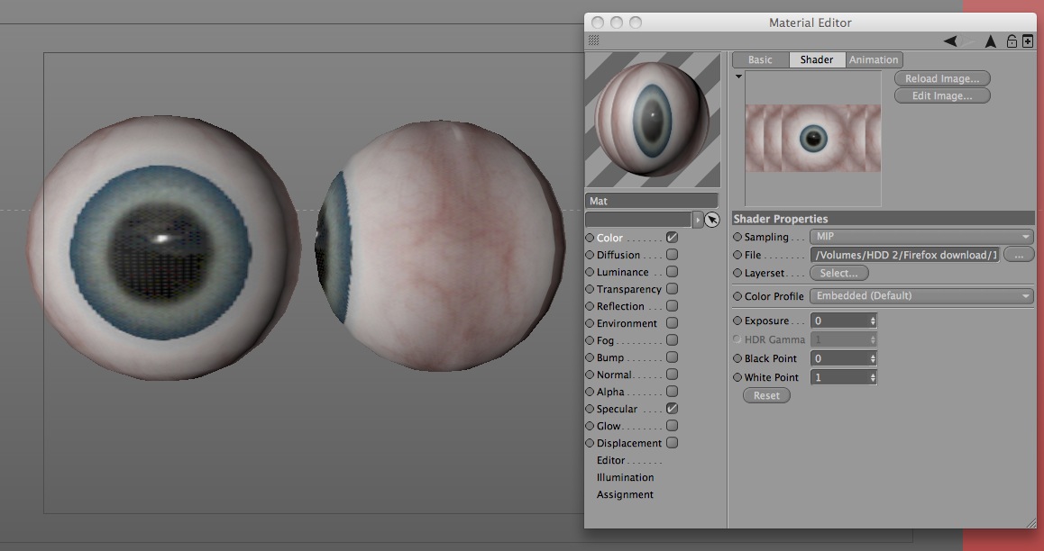 si infatti, non devi scomodare bodypaint per un occhio, la metti piatta, o sferica o addirittura e' comoda l'avvolgente, che e' una sferica con una sola chiusura a caramella, che girandola bene dall'altra parte ti mappa l'occhio come la parte alta di una mongolfiera, che se appositamente spostata sul davanti non hai distorsioni come nella sferica...
