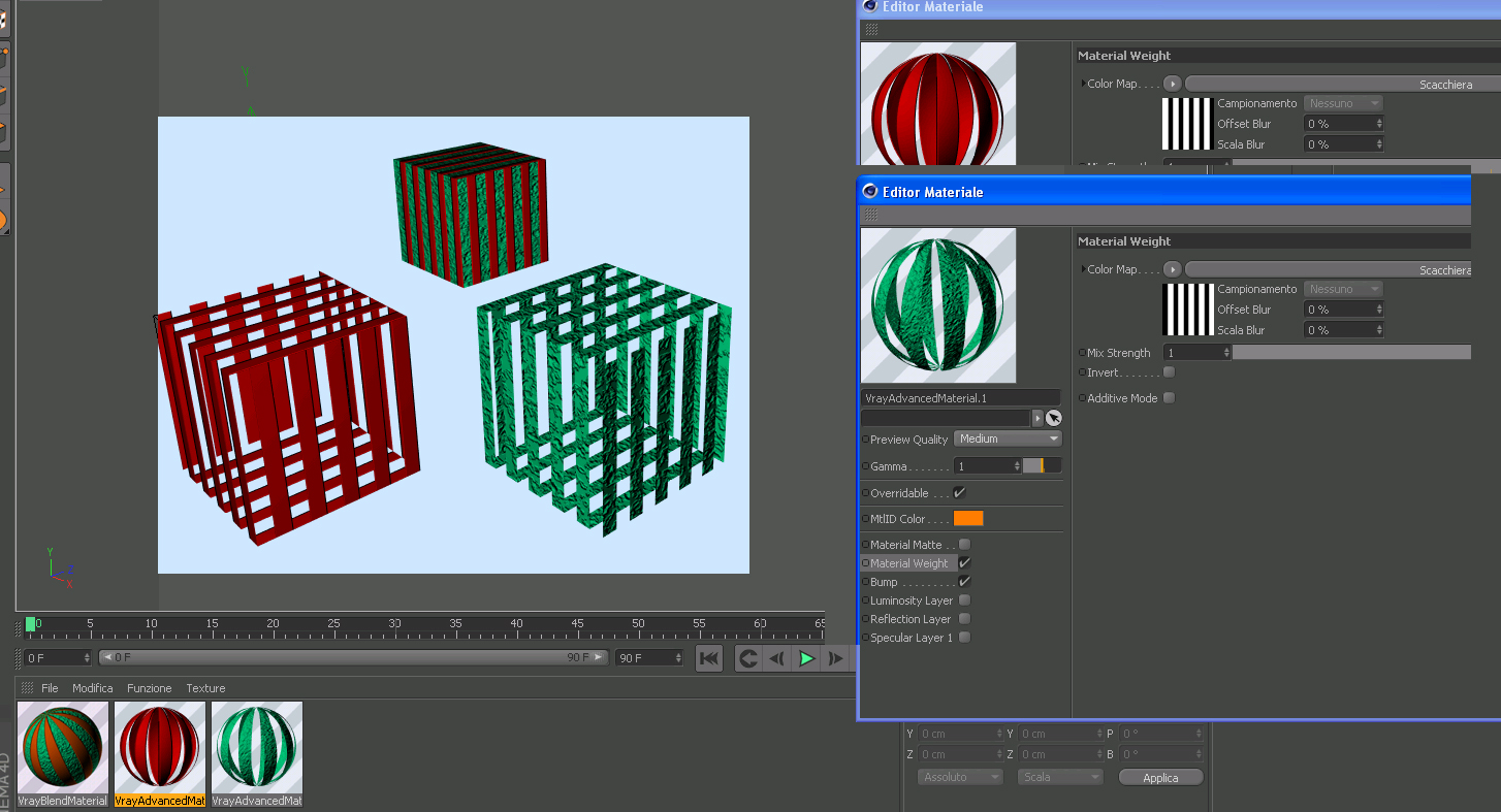1) creare un mat. vray per la parte lucida con Material Weight attivato