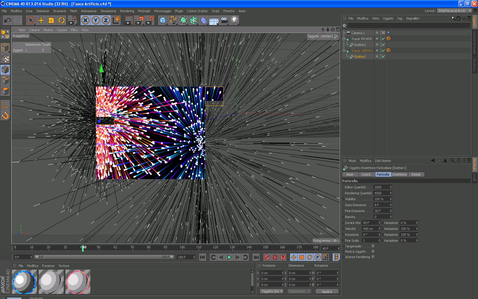 preferenza personale per fuochi d'artificio: emitter + tracer