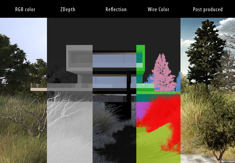 Quoto vampiro, l'unica cosa che non si riesce a fare col multipass è il render denominato Wire nel tuo esempio, perché i materiali di cinema non posseggono il Material ID; puoi ovviare, se hai Vray, seguendo l'ottimo tutorial di nexzac: http://www.simonemanna.it/vray-multipas ... terial-id/