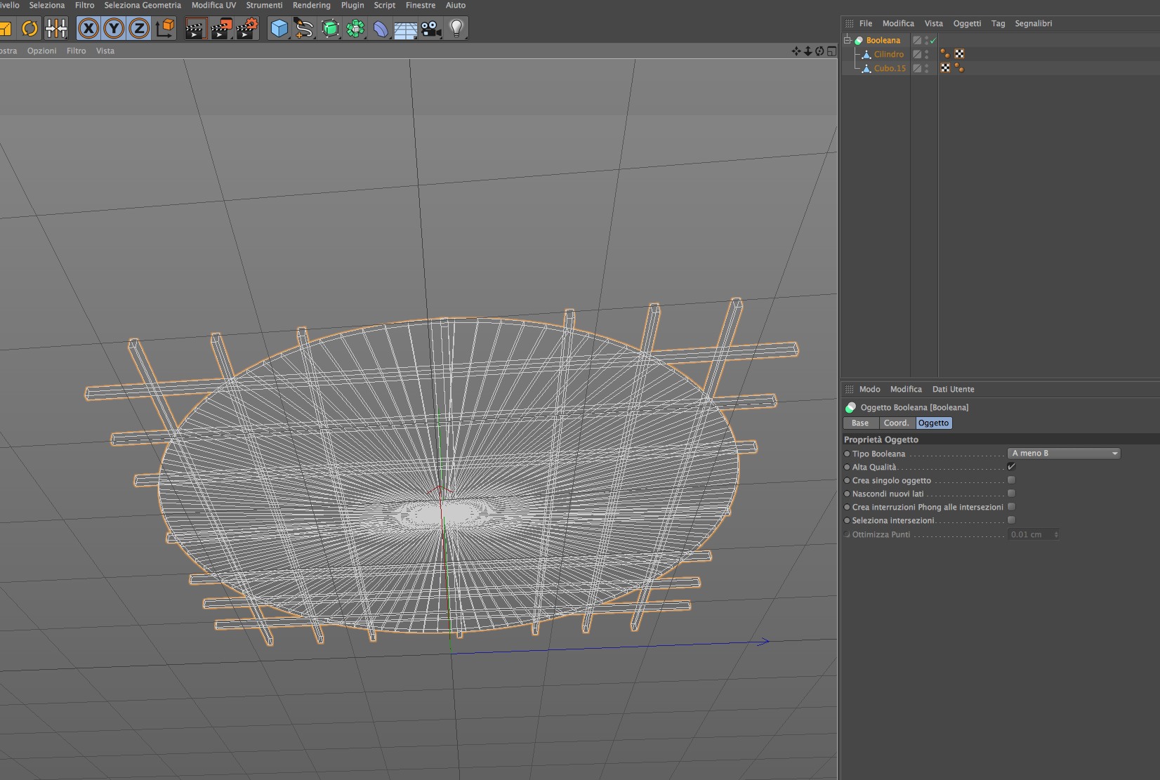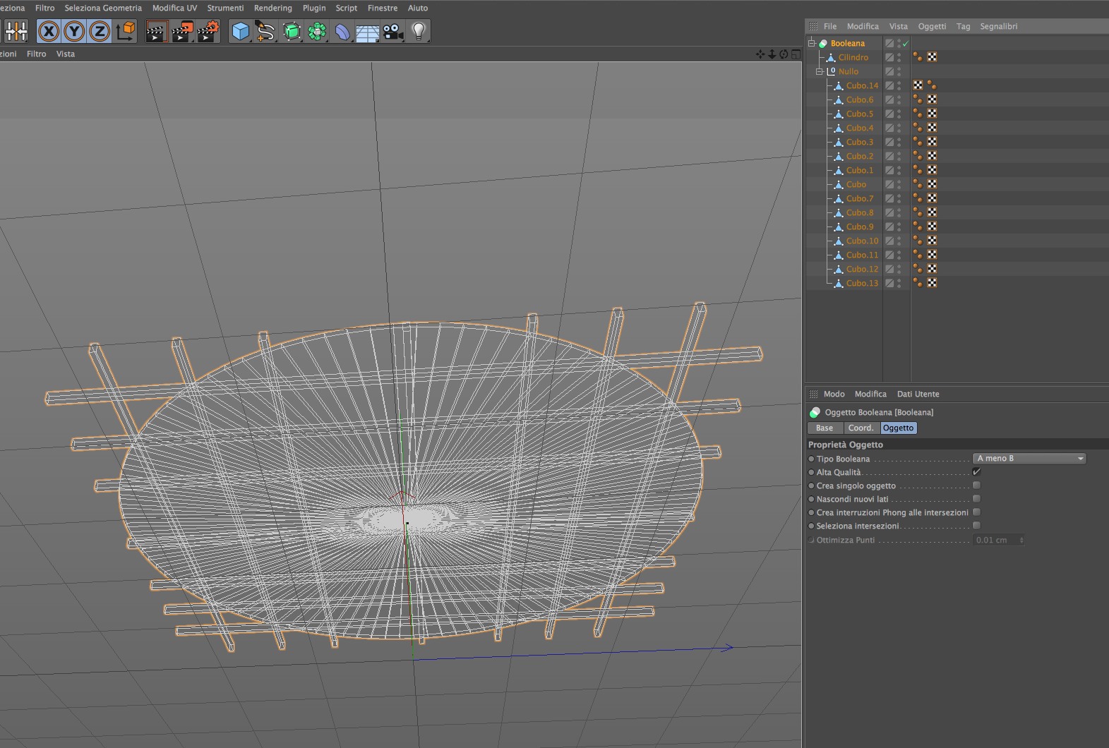per unire i tubi verticlali e poi orizzontali intendi raggrupparli?hurricane ha scritto:Non ho provato, ma prova a unire prima i tubi verticali, poi gli orizzontali ed a fare una Booleana unisci con i tubi, e poi stato corrente ad oggetto per ottenere un oggetto griglia unico e poi fai la booleana col disco, spero di essermi spiegato!
