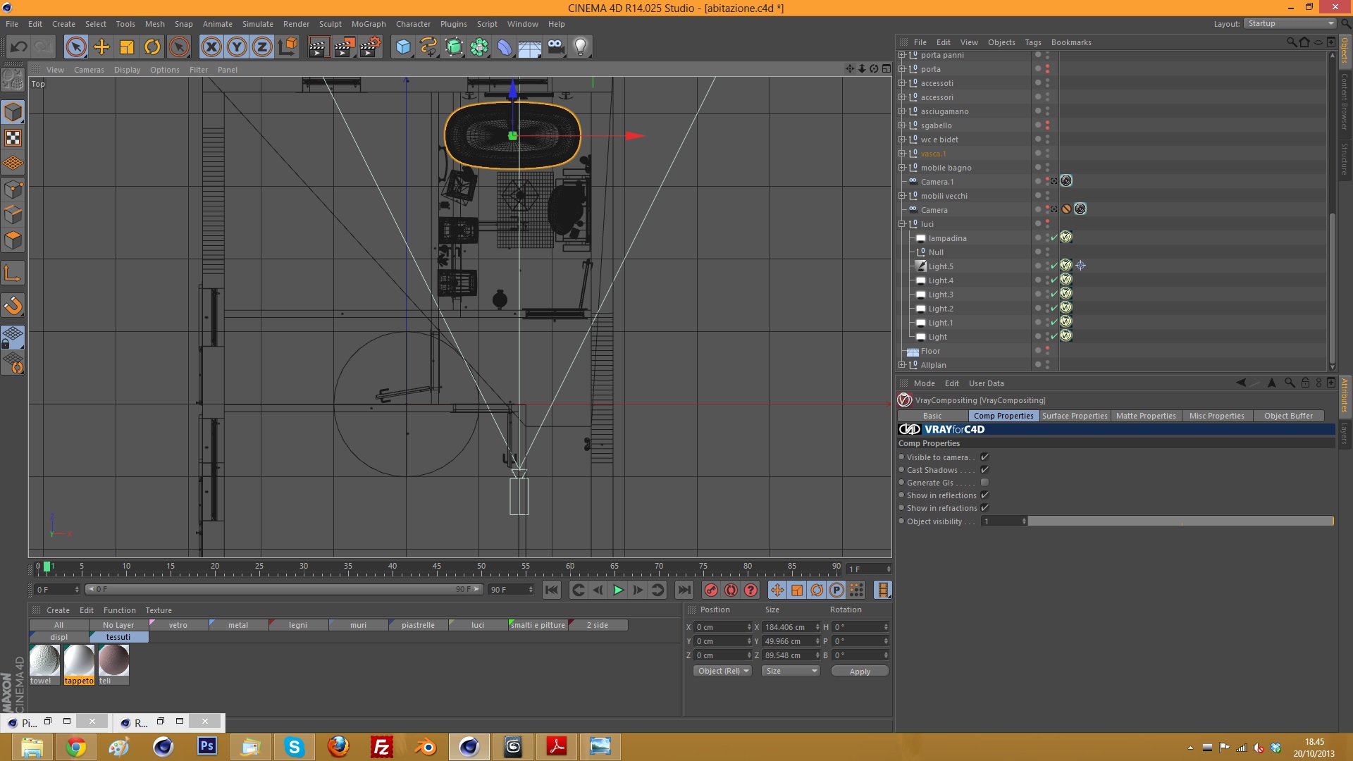 Per quanto riguarda l'illuminazione e l'ambientazione rivedrei buona parte del progetto. Se hai la finestra rivolta a nord e vuoi utilizzare le luci artificiali, come avviene in fotografia, per creare un effetto più realistico, farei entrare dalla finestra una luce fredda come già fatto, a cui però affiancherei delle luci artificiali molto più calde, quindi gialle.