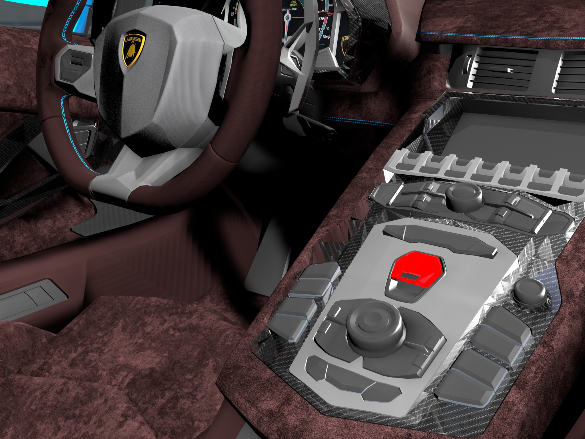 Il mio problema è che quando renderizzo la scena, le mesh risultano troppo nette quindi le superfici riflettono la luce in modo troppo netto a causa di tutti i poligoni non arrotondati (come mostrato in figura nella plancia centrale in carbonio).