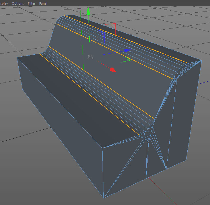 l'oggetto è semplicemente un rettangolo, come se fosse una primitiva di un divano diciamo, l'oggetto in grigio ovviamente, e quello che si vede è un "bracciolo" del divano, potete vedere anche voi, che pur avendo smussatura convessa, un "angolo" lo smussa linearmente....come mai?? l'oggetto è pienamente simmetrico, i punti del lato del bracciolo sono allineati con quelli a terra (ovviamente c' è una linea loop che fa il giro)... non so se mi sono spiegato :)