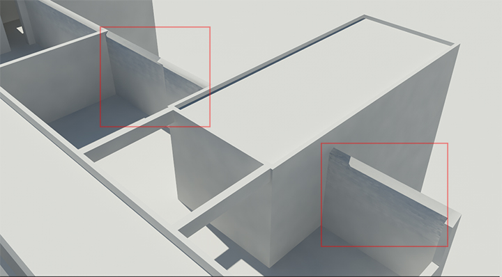 ma ho ancora qualche problema nei punti alla base delle finestre: è come se tra pilastro e davanzale ci sia uno spazio (si intravede una cosa simile nella seconda immagine cerchiato in rosso)