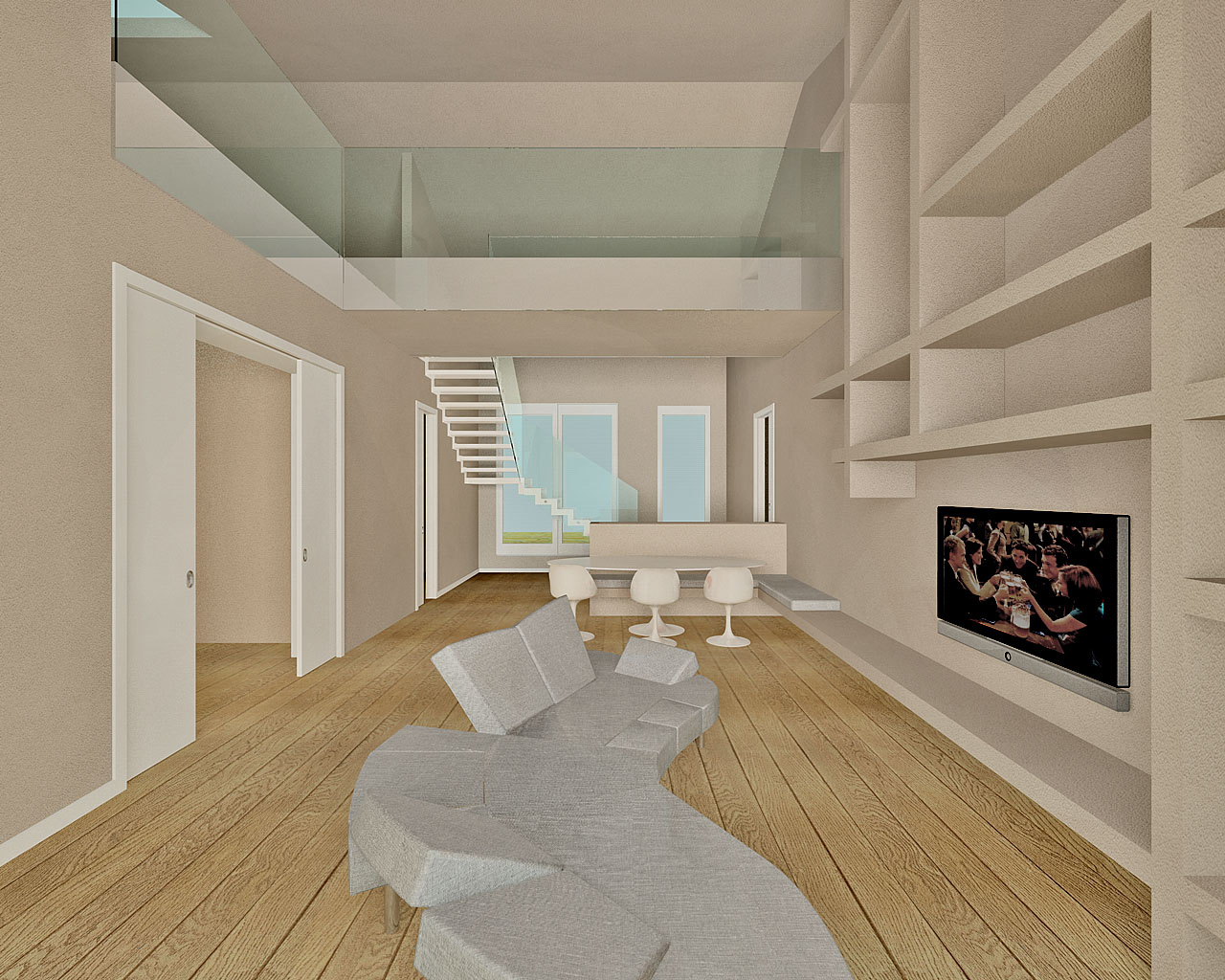 Per le luci ho utilizzato una omni che simula il sole con ombra netta e delle area con ombra area nelle finestre...avevo messo l'ombra area anche al "sole" ma i tempi di rendering erano infiniti quindi ho messo la netta che però mi sembra appiattisca un pò anche l'effetto delle luci area...