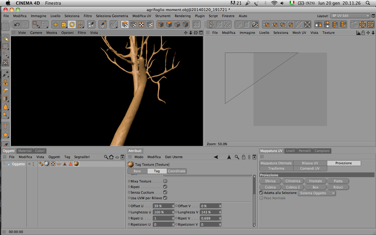 tutto questo per dire che non è una cosa da cinque minuti o da una sola azione e che se vuoi texturizzare l'albero in modo preciso ( non accontentandoti di quella che è la proiezione migliore tra quelle disponibili) dovresti studiare un po body paint, capire la stesura di una mappa, ottenerla e infine applicare la texture...