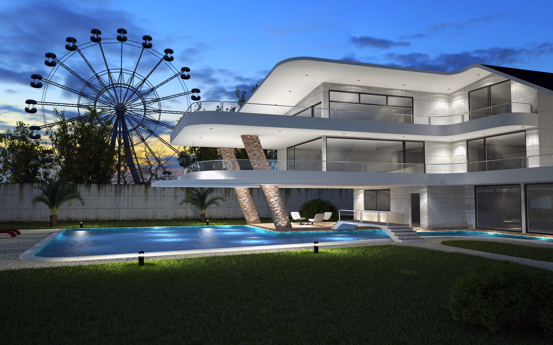Ciao ragazzi, ho ripreso un mio vecchio progetto, per l architettura mi sono basato su un immagine di una casa trovata sul web, mentre per quanto riguarda l illuminazione ho preso spunto dalla bellissima immagine di Vitt23 presente nella galleria a pagina 3, naturalmente neanche a paragone con l immagine di Vitt23..magari essere a quei livelli! X l erba provvisoriamente ho messo una tex, in previsione poi di crearla con il fur o fast and fur, che dite? Creo un tassello e poi Duplicatore con istanza di render attivato? L illuminazione è data dall immagine sullo sfondo caricata nel back env e dalle luci ies tante quanti sono i faretti, cioè 48.