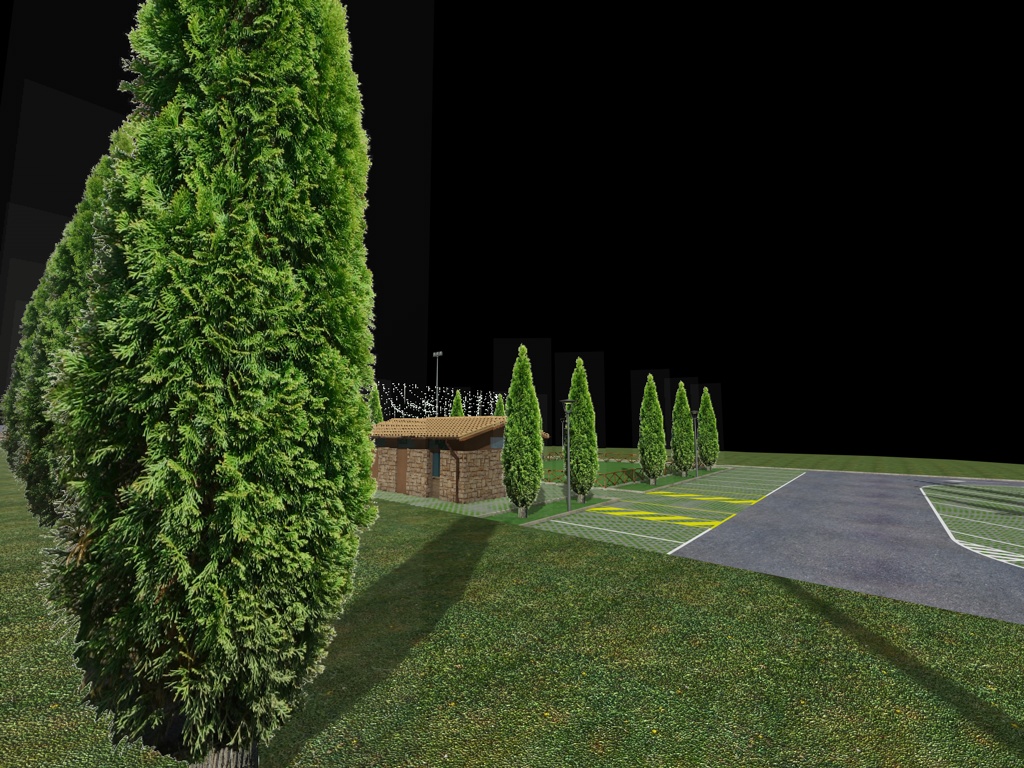Mi spiego meglio, sto realizzando un render di un campo sportivo e di un piccolo parco giochi completamente tappezzato di cipressi.