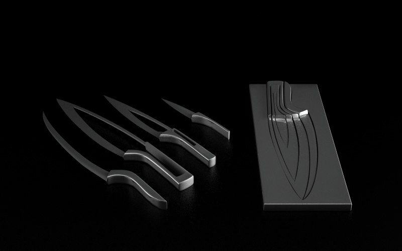 Vedrei di più il set di coltelli, magari con un ceppo di legno dove infilarli.