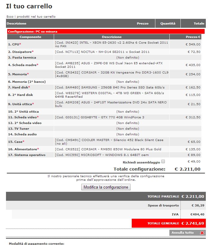 Purtroppo di assemblati con quelle cpu non ne trovo, ho dovuto assemblarne uno su syspack. Verrebbero 3300€ ivato senza monitor, tastiera e casse. Potrei anche fare questo sforzo; se sapessi per certo che con un dual xeon riesco a lavorare bene su photoshop tipo mentre renderizzo opterei di certo per questa soluzione (sulla foto c'è solo una cpu, ne ho considerate 2 sui 3300)