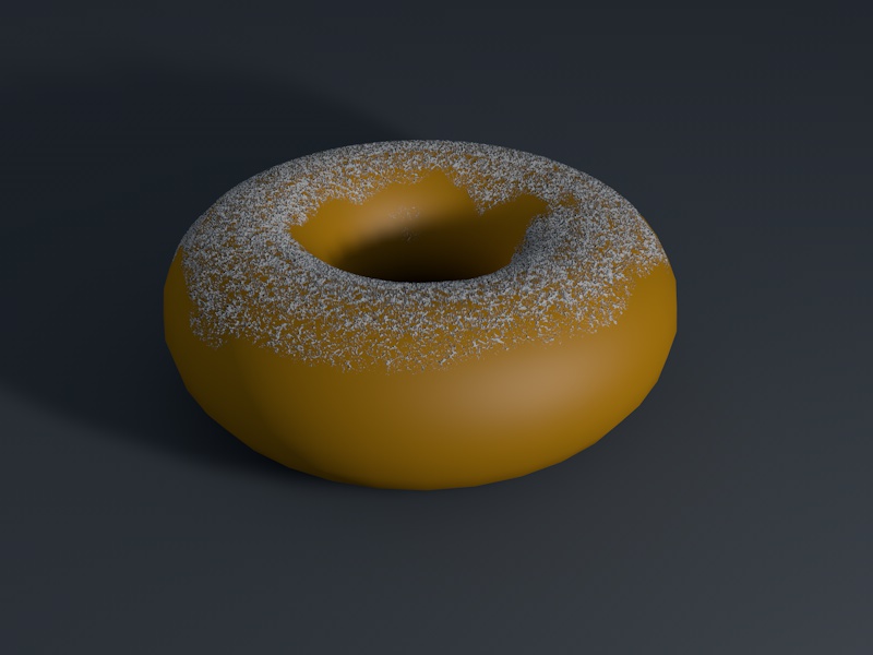 Il tuo risultato con lo zucchero, non mi convince molto perché non ha spessore, ti avevo consigliato una copia della mesh ( anche spittano solo la parte superiore della ciambella ) proprio perché utilizzando un layer nel canale dispacement con una vertexmap, potevi controllare minuziosamente la quantità di zucchero ( in particolare sui bordi ) comunque ... va bene anche così...