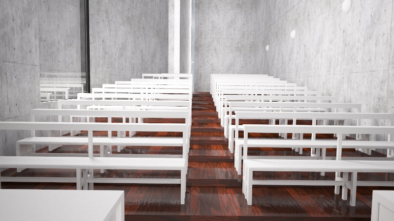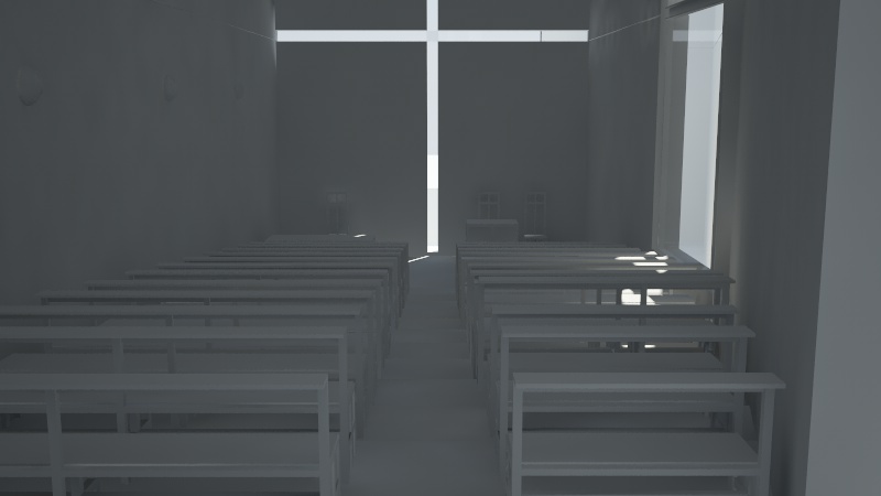 Come materiali ho lasciato solo il vetro per far entrare la luce e il bianco generico per il resto della scena