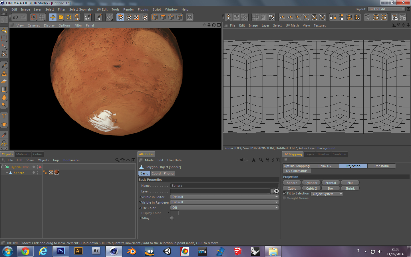 Se hai usato la UVW devi ovviamente stendere la uvw della sfera in base alla texture