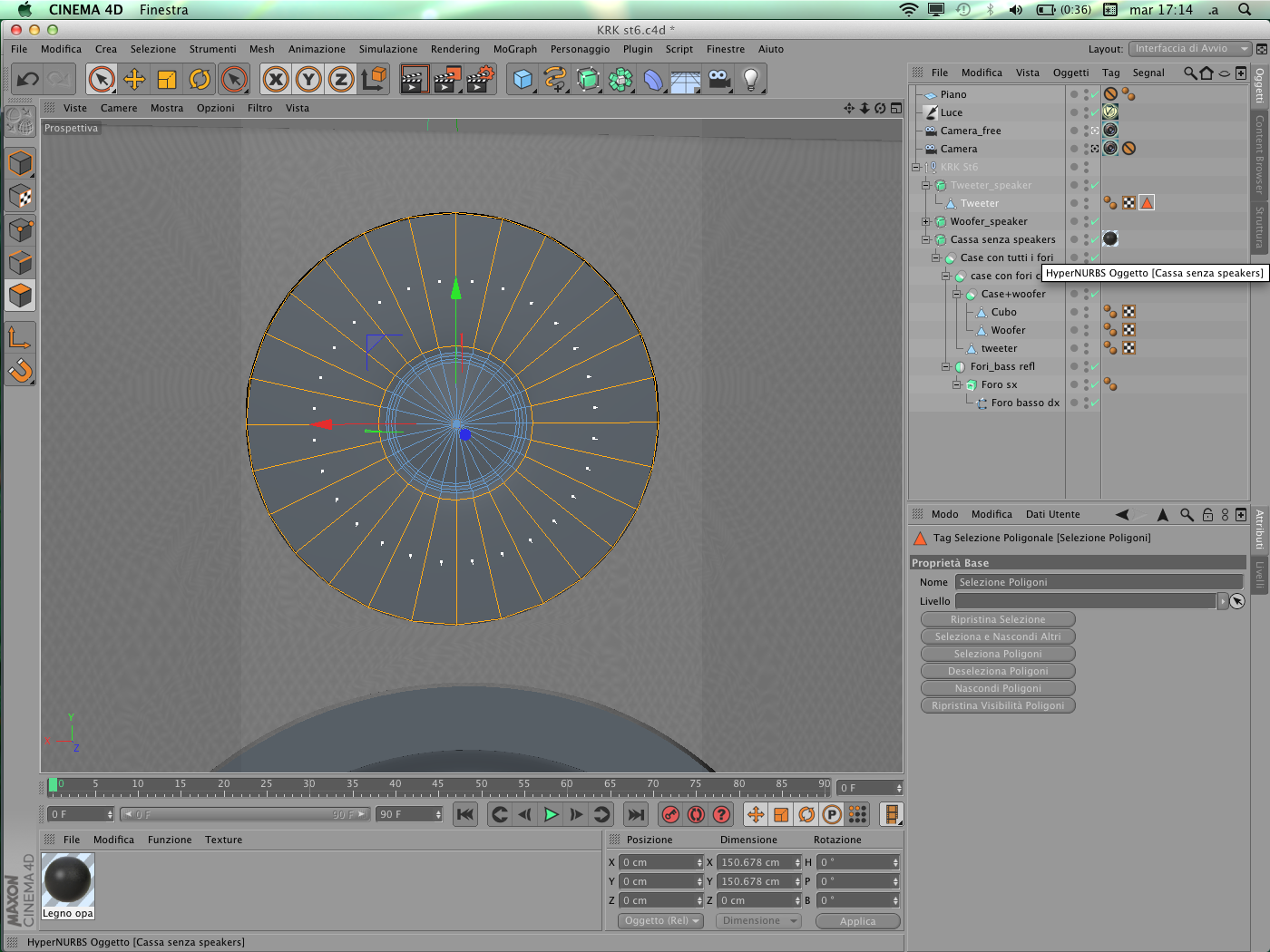 Tutto è proceduto bene fino ad ora: il problema è che devo assegnare due tipi di materiale differenti al tweeter (lo speaker piccino) del monitor.