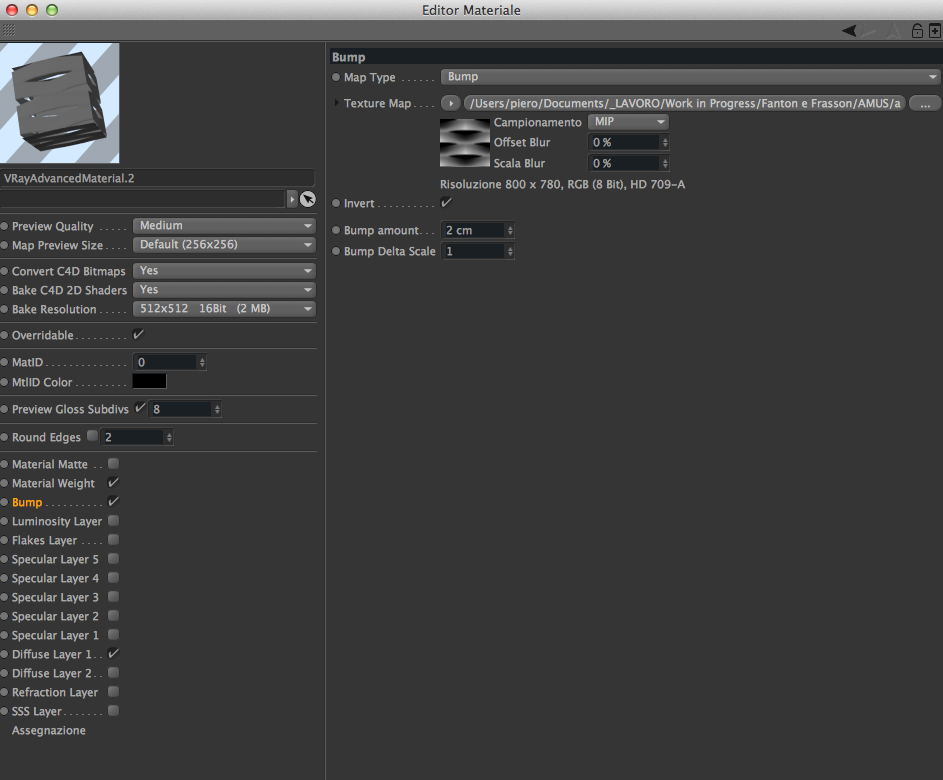 Attenzione anche all'intensità del bump, non utilizzare valori poco realistici(sopra i 2/5cm).