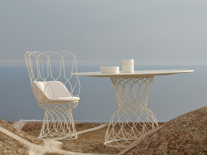 mi trovo a dover inserire in un esterno la sedia+tavolino re-trouve' di Patricia Urquiola: considerata la "solita" urgenza nella consegna del lavoro e la complessità del soggetto sono a chiedervi quale strada intraprendere nella modellazione che non è proprio il mio punto di forza.