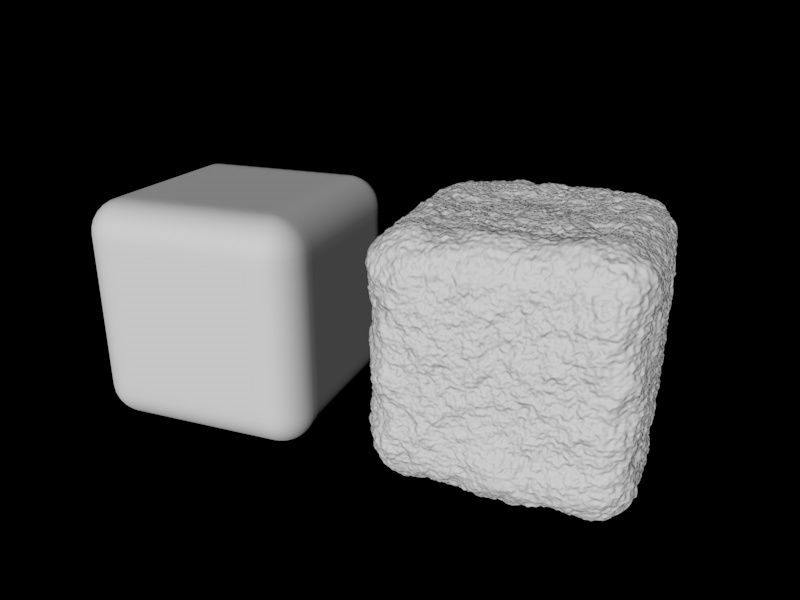 Comuque a me mi interessava rendere come un pietra un cubo senza usare il render , che si poteva vedere sia con il render e sia senza renderhurricane ha scritto:Prendi il cubo, smussalo, suddividilo in maniera adeguata e applica un materiale con canale Displacement attivato in cui carichi uno Shader Disturbo (io ho utilizzato l'FBM) poi è questione di variare l'altezza in cm del Displ. e la Scala Globale del disturbo!