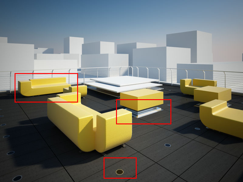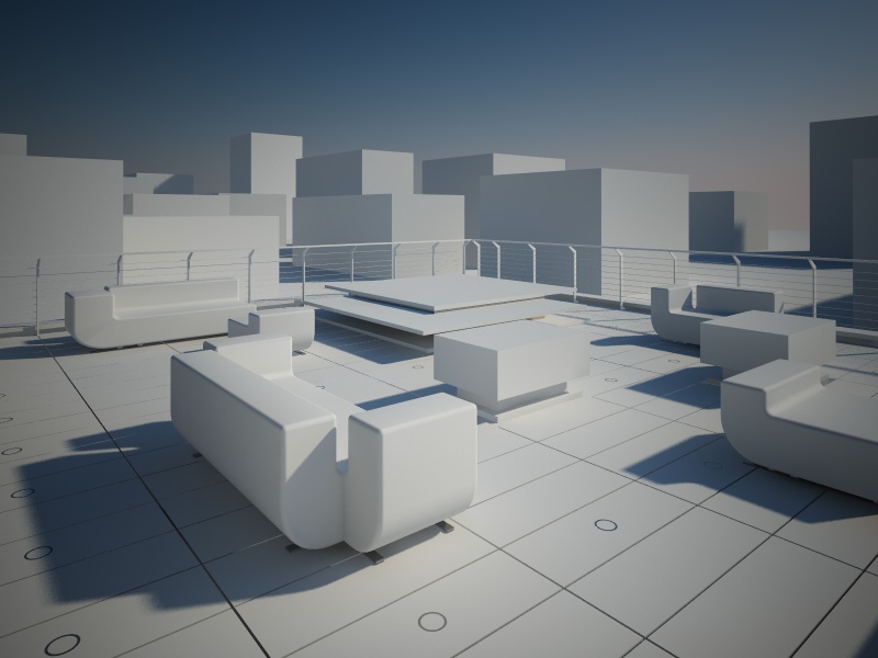 Come vedete, ho necessità di aiuto....in particolare non mi riesce di rendere alcun tipo di acciaio spazzolato (ai basamenti dei "tavolini", nè il tessuto dei divani che sembra plastificato).