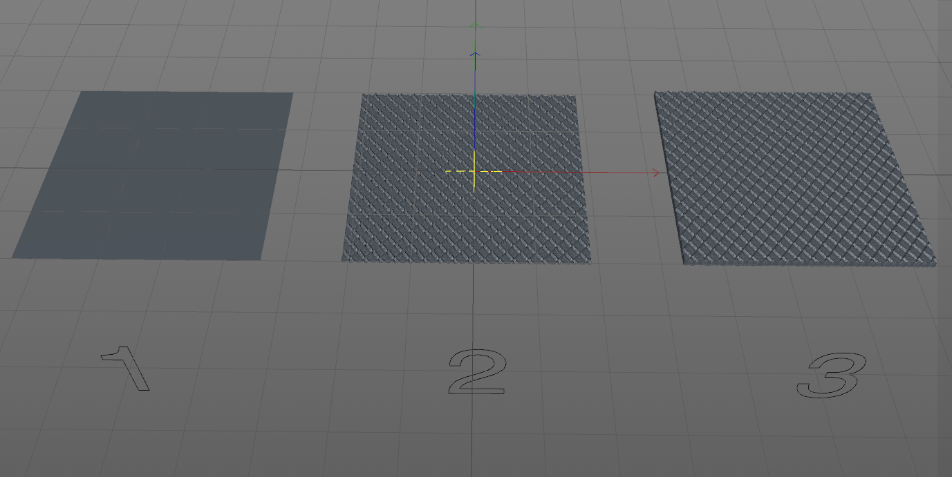 And finally i tried to use a plane material with many polygons, select them and use bevel, then i used select invert and extrude them, but the result was square form and not triangle.
