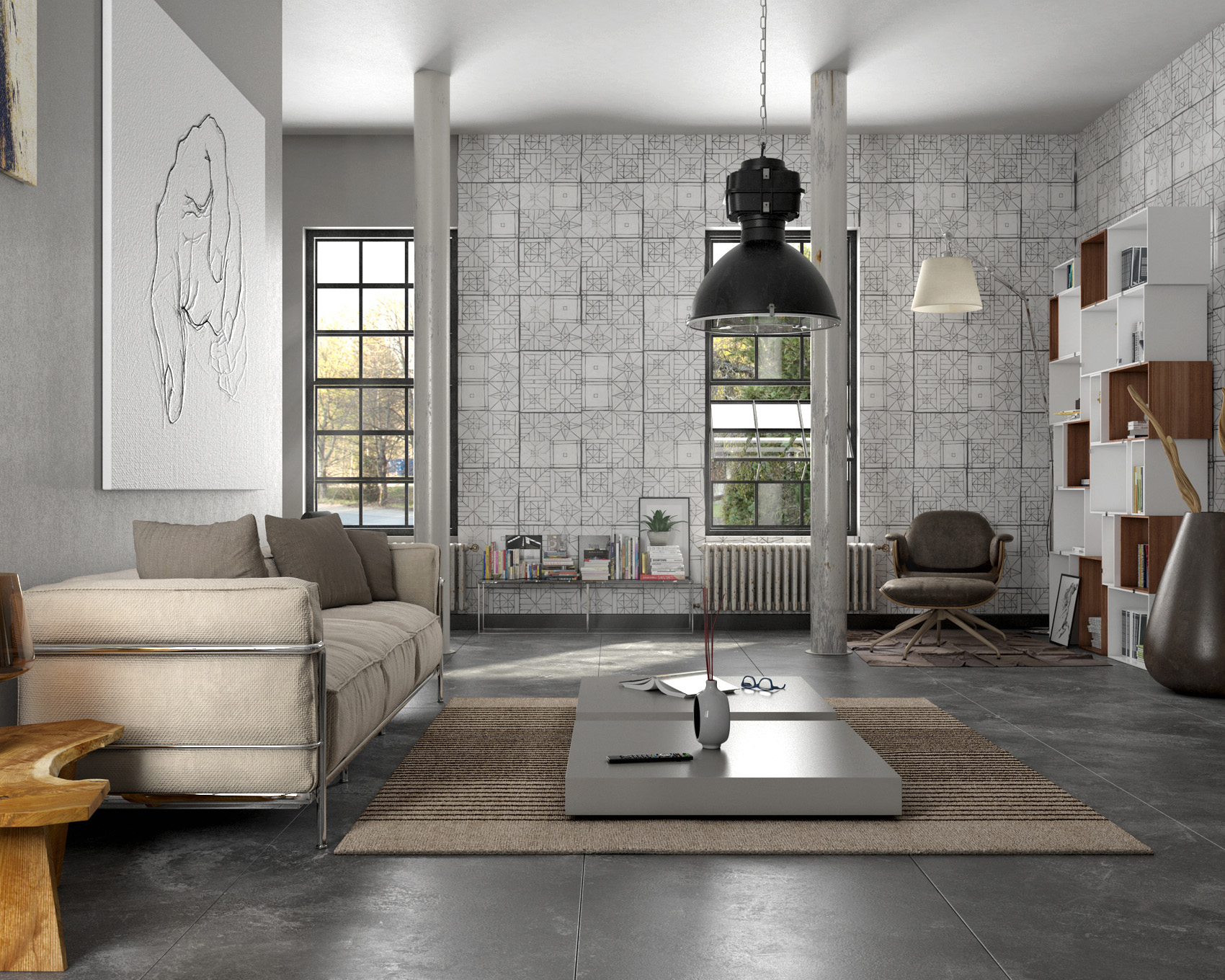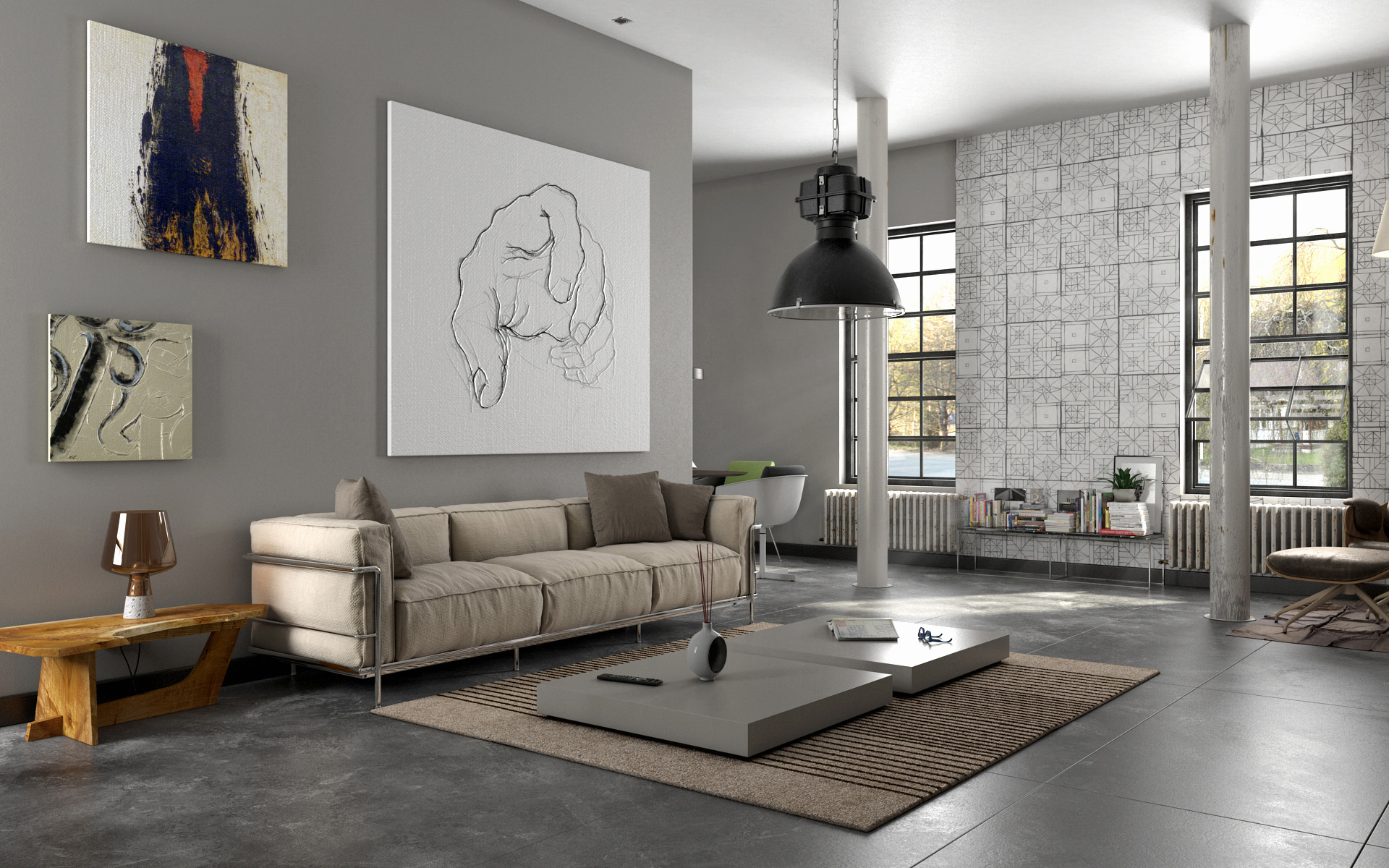 Ciao amici e dopo tanto metto qui, in pasto al forum, il mio ultimo lavoro. Ispirato da un articolo di una rivista di arredamento, ho cercato di ricreare 3 ambienti di un'abitazione stile industriale.