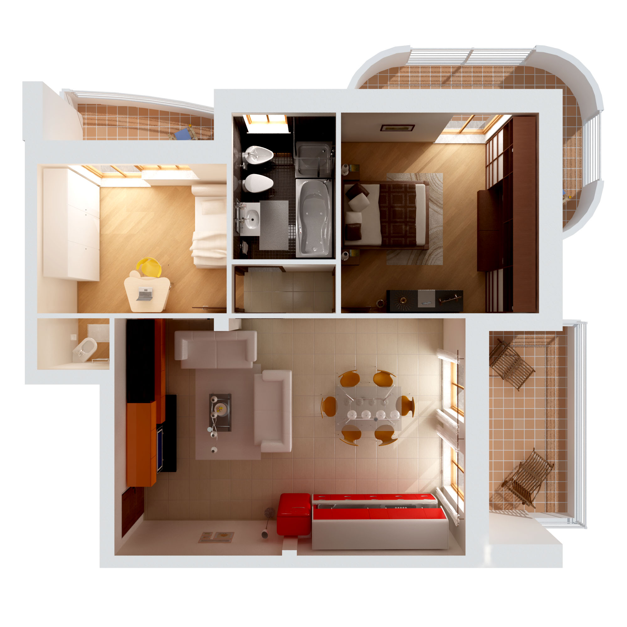 se usi un tele fai un render differente da quello che hai postato, che ha nella sua forza quello di far vedere la pareti, dare corpo e spessore tridimensionale ed ottenere un render diverso da una planimetria 2D