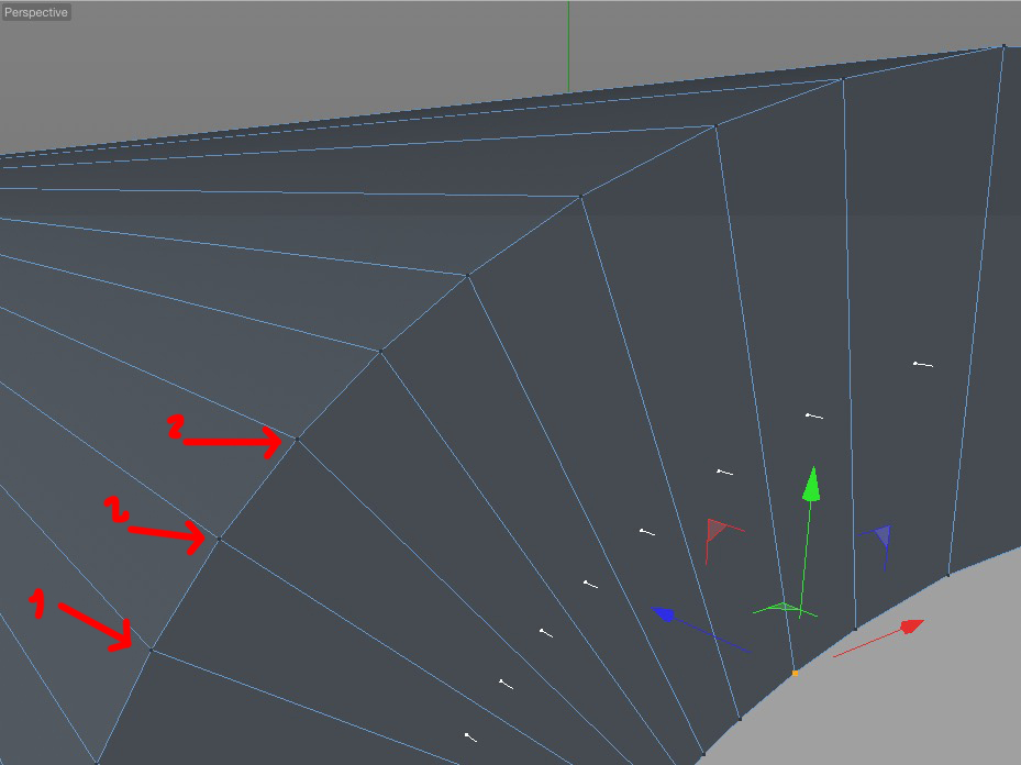 questa storia dei punti contigui (vertex) mi fa un po' storcere la bocca. Spesso accade che hai una mesh dove ci sono vertici separati anche se non si vedono... esempio: Qui i vertex sembrano regolari, ma in realtà, quelli evidenziati dalla freccia sono due vertex nasconsti in uno solo...