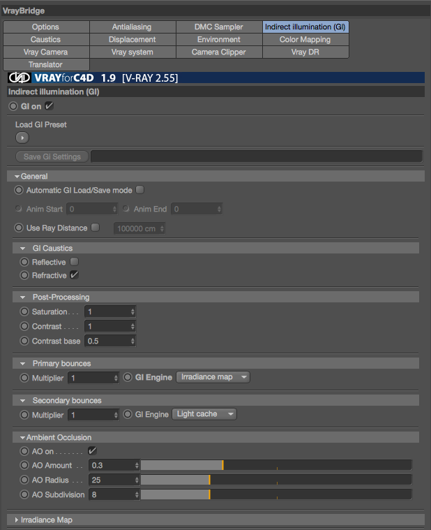 Per la GI ho un preset: 02_IR-LC_very fast [for print size]