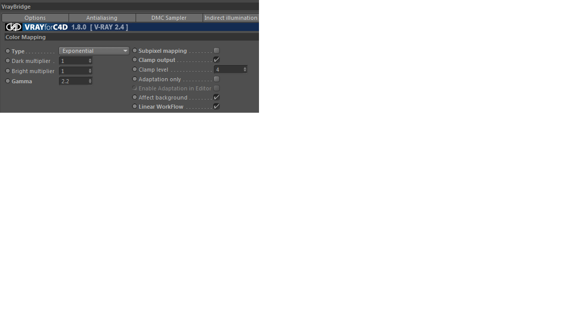 La camera è una semplice camera (no vray phisical camera) con focale 50mm e con abilitato il clipping vicino con tutti gli altri paramentri di default.
