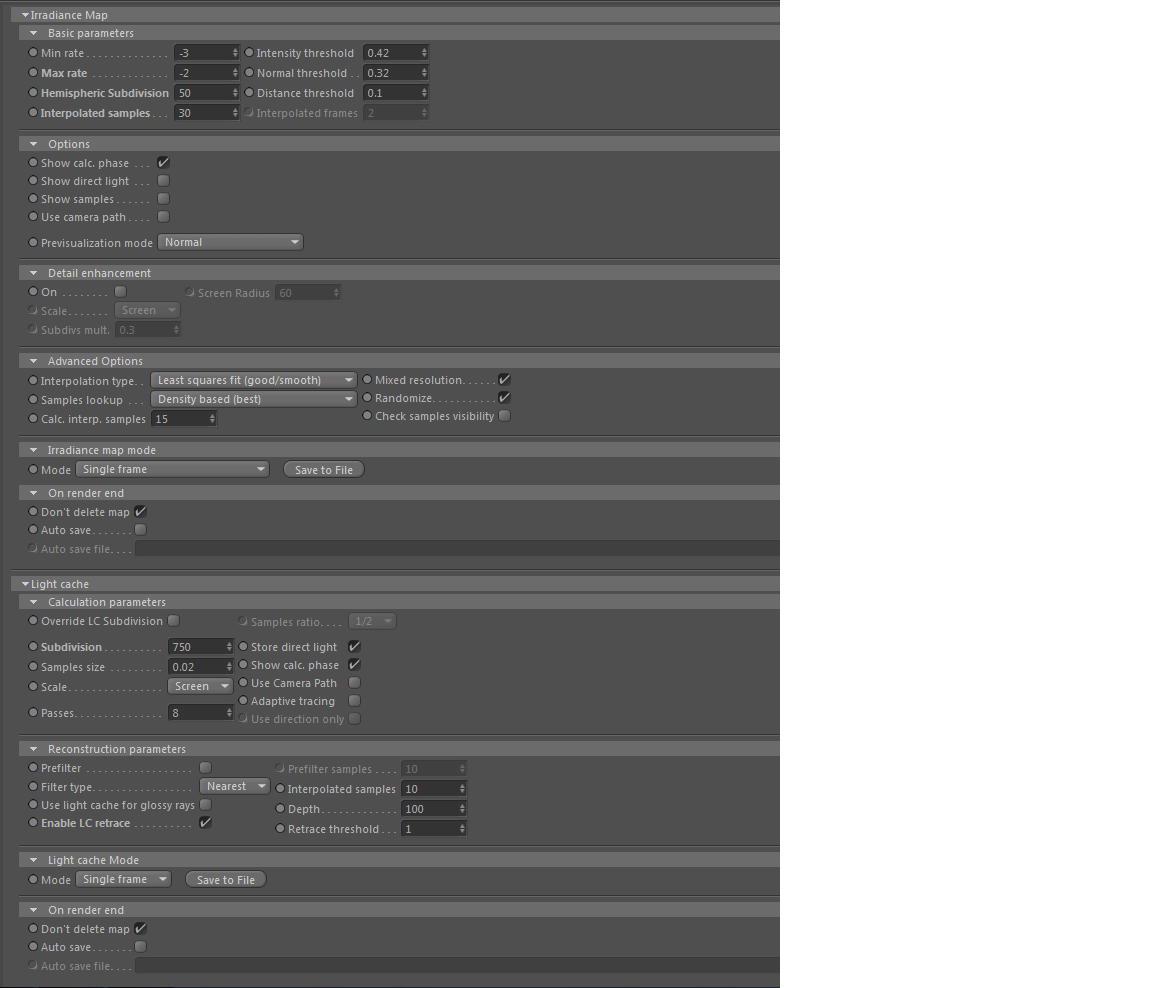 Devi indicare i parametri delle luci, quelli delle ombre, impostazioni camera, impostazioni GI, color mapping insomma tutto