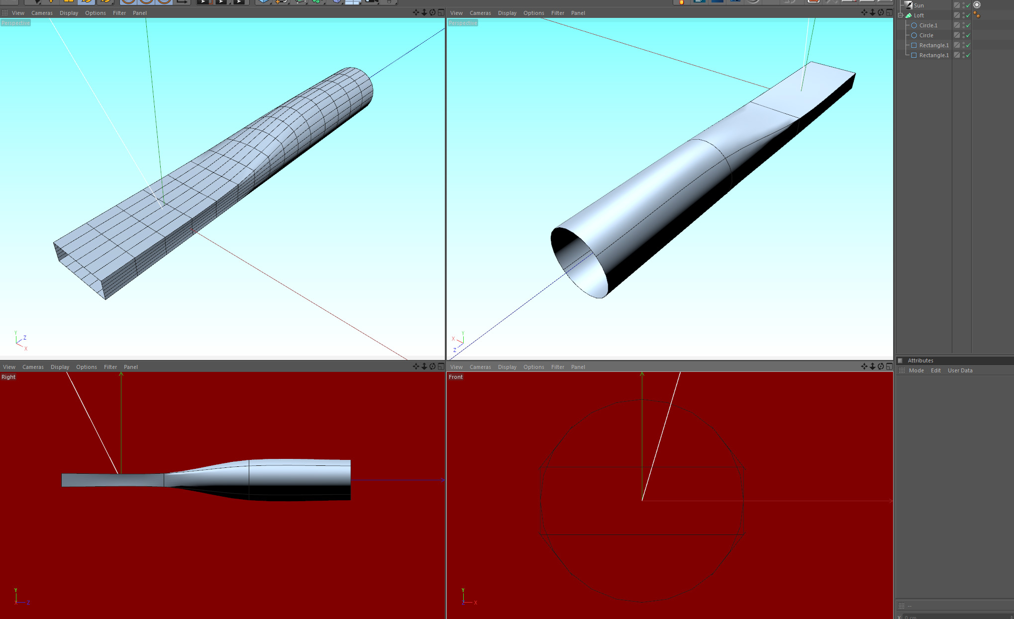 devo creare un corpo che da rettangolo 3x1 cm diventa tubo 3cm diametro