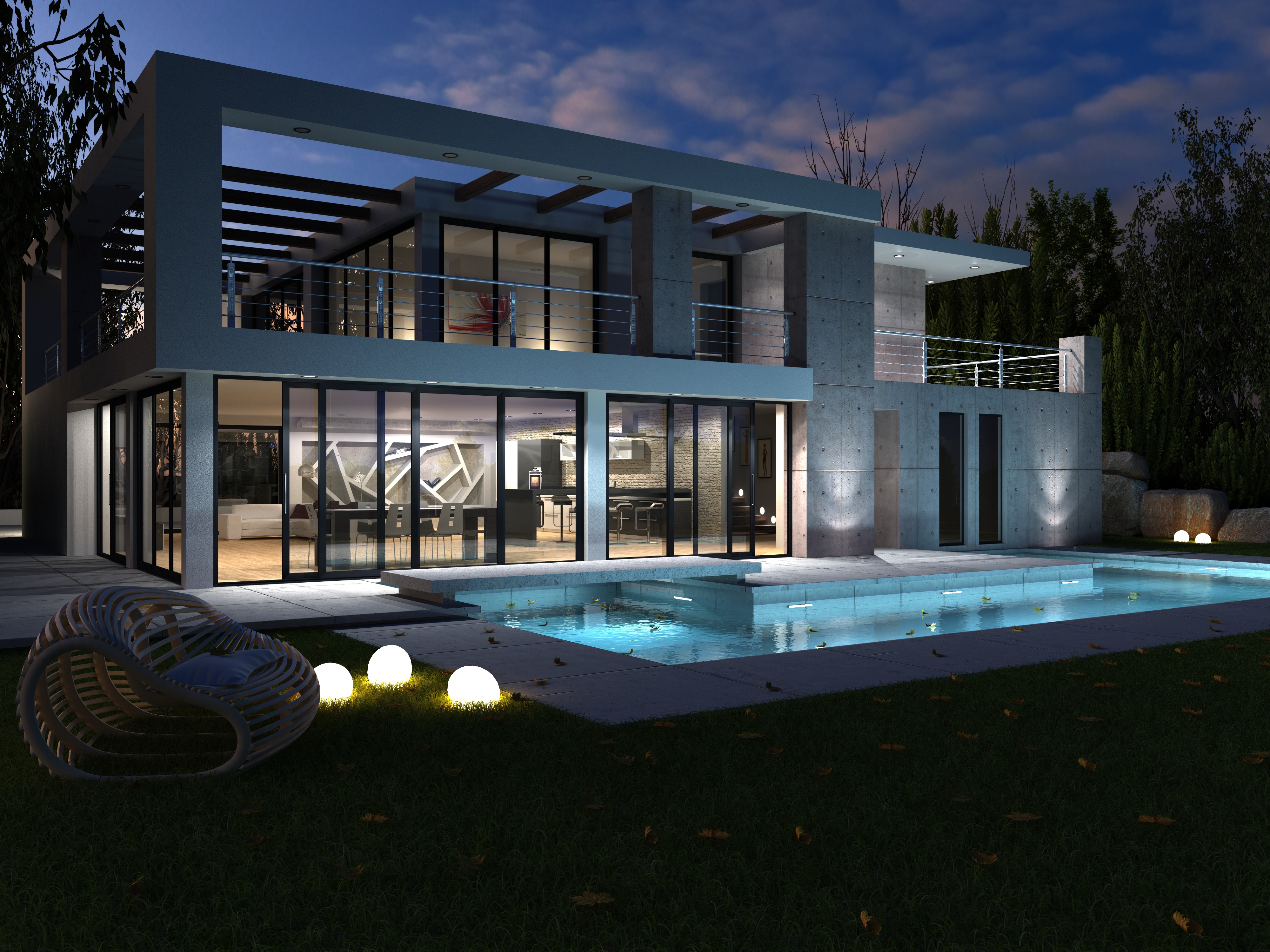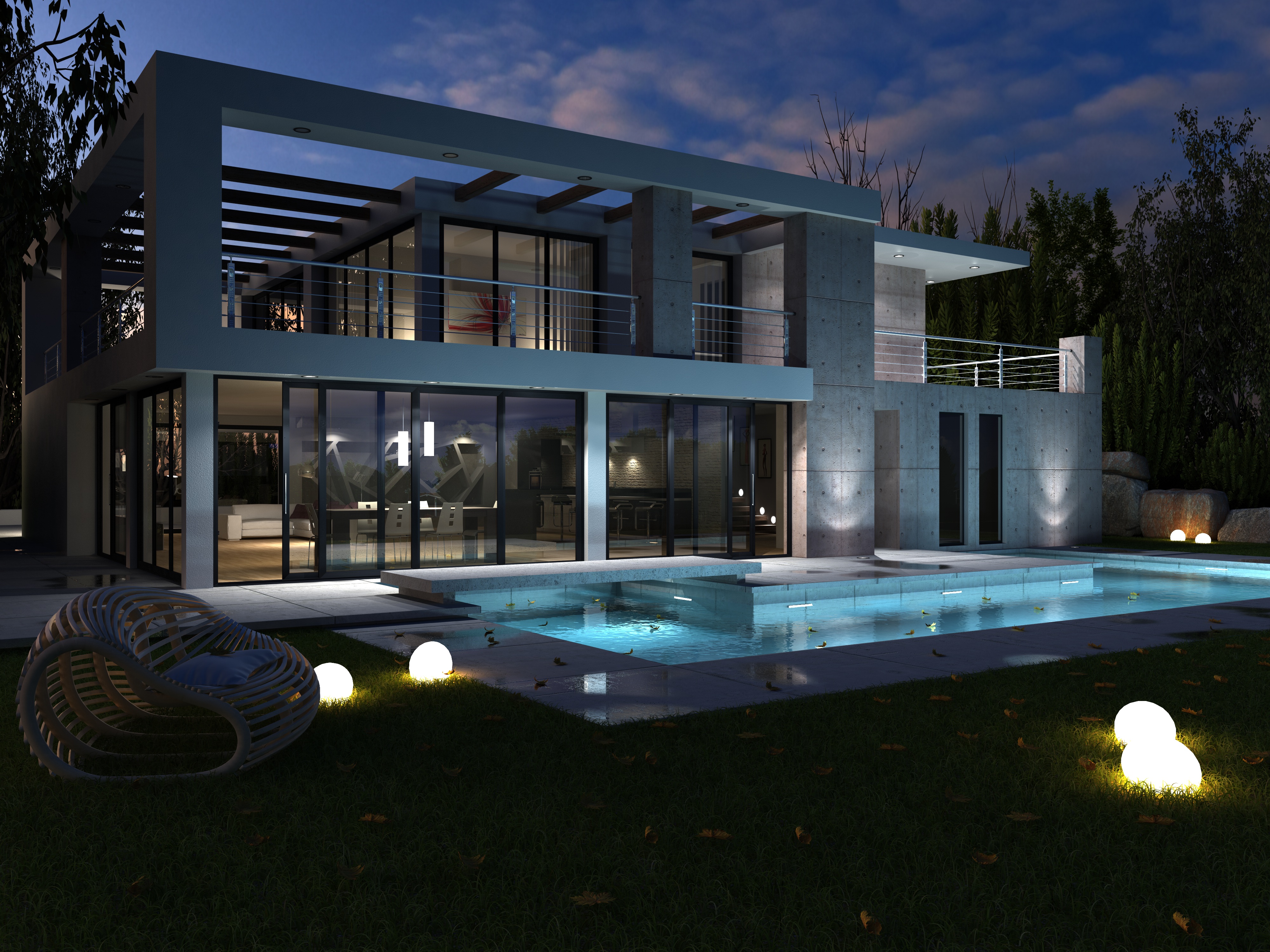 Da semplice osservatore: anche a me l'illiminazione della zona giorno (sotto) non convince: troppa luce, troppo luminosa. La parte sopra (zona notte immagino( molto ma molto meglio così in penombra...........Bene la piscina e i 3 globi li distanzierei: uno vicino alla sedia dov'è adesso, ma gli altri due attorno alla pascina sulla parte dxin modo da illuminare anche un pò il prato...............Prova a spegnere o ad attenuare la luce (o le luci) che illuminano la scultura della zoma giorno................ E prova ad abbassare anche l'illuminazione principale della zona sotto, in modo che contrastino le leci esterne, che così si "perdono" nella troppa luce globale. Ottimo lavoro cmq......................