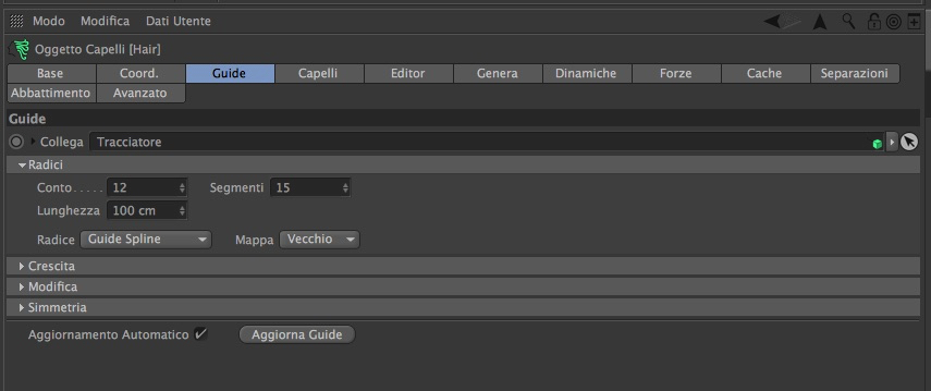 - nei render setting aggiungere (se non c'è) Hair Render e spostarlo più in alto rispetto a VrayBridge - nella scena aggiungere un Hair Object impostato così: Questo passaggio dall'oggetto Hair è necessario per poter assegnare un materiale alle splines, altrimenti ti vengono solo grigie (per via di un bug)