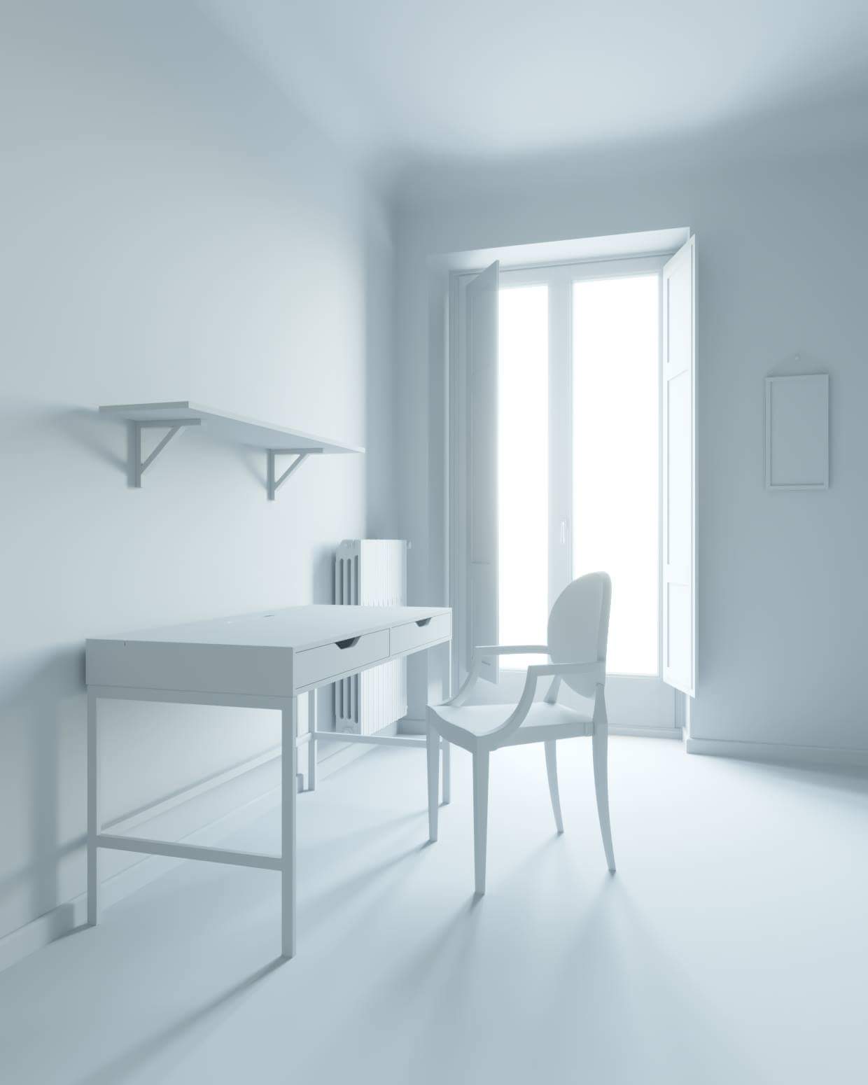 Ho inserito altri oggetti nella scena... diciamo che dovrebbe essere completata, non so se aggiungere o meno un tappetto sotto la sedia... buh!!!